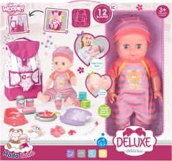 Το σετ περιέχει όλα τα απαραίτητα αξεσουάρ για τη φροντίδα της κούκλας. Τα παιδιά θα βρουν εδώ σετ ταΐσματος, αξεσουάρ αλλαγής πάνας και πολλά άλλα παιχνίδια. Η κούκλα μάλιστα μπορεί να κάνει πιπί στο γιογιό, κάτι που προσθέτει ρεαλισμό στο παιχνίδι.