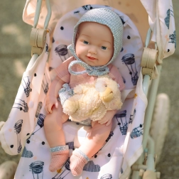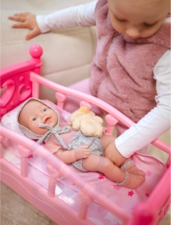 Η κούκλα μιμείται εύκολα ένα αληθινό μωρό: τα χεράκια και τα ποδαράκια κινούνται, ενώ η πιπίλα τοποθετείται άνετα στο στόμα για ηρεμία και παιχνίδι ύπνου.