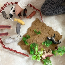 Το σετ παιχνιδιών ενθαρρύνει τα παιδιά να μάθουν να αναγνωρίζουν και να ονομάζουν διαφορετικά είδη ζώων μέσα από διασκεδαστική δραστηριότητα.