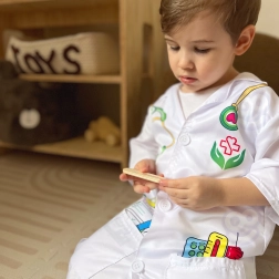Ιατρική στολή για παιδιά από τη μάρκα Woopie που ενθαρρύνει το πάθος τους να βοηθούν τους άλλους. Πολλά παιδιά ονειρεύονται να γίνουν γιατροί και με αυτή τη στολή μπορούν να το νιώσουν. Θυμηθείτε ότι το παιχνίδι ρόλων διεγείρει τη φαντασία και τη δημιουργικότητα του παιδιού σας!