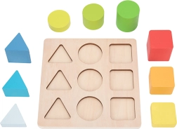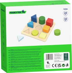Ξύλινο παζλ από τη μάρκα TOOKY TOY που μαθαίνει στα παιδιά να αναγνωρίζουν σχήματα και χρώματα και αναπτύσσει τη λεπτή κινητικότητα, τη λογική σκέψη και τον συντονισμό χεριού–ματιού. Το παιδί τοποθετεί 9 πολύχρωμα κομμάτια – τρίγωνα, τετράγωνα και κύκλους – στις σωστές θέσεις του πίνακα. Υπέροχη διασκέδαση και εκπαίδευση μνήμης και συγκέντρωσης για τους μικρούς μας φίλους.