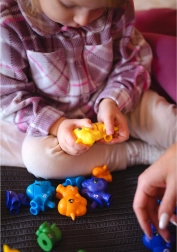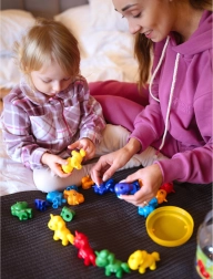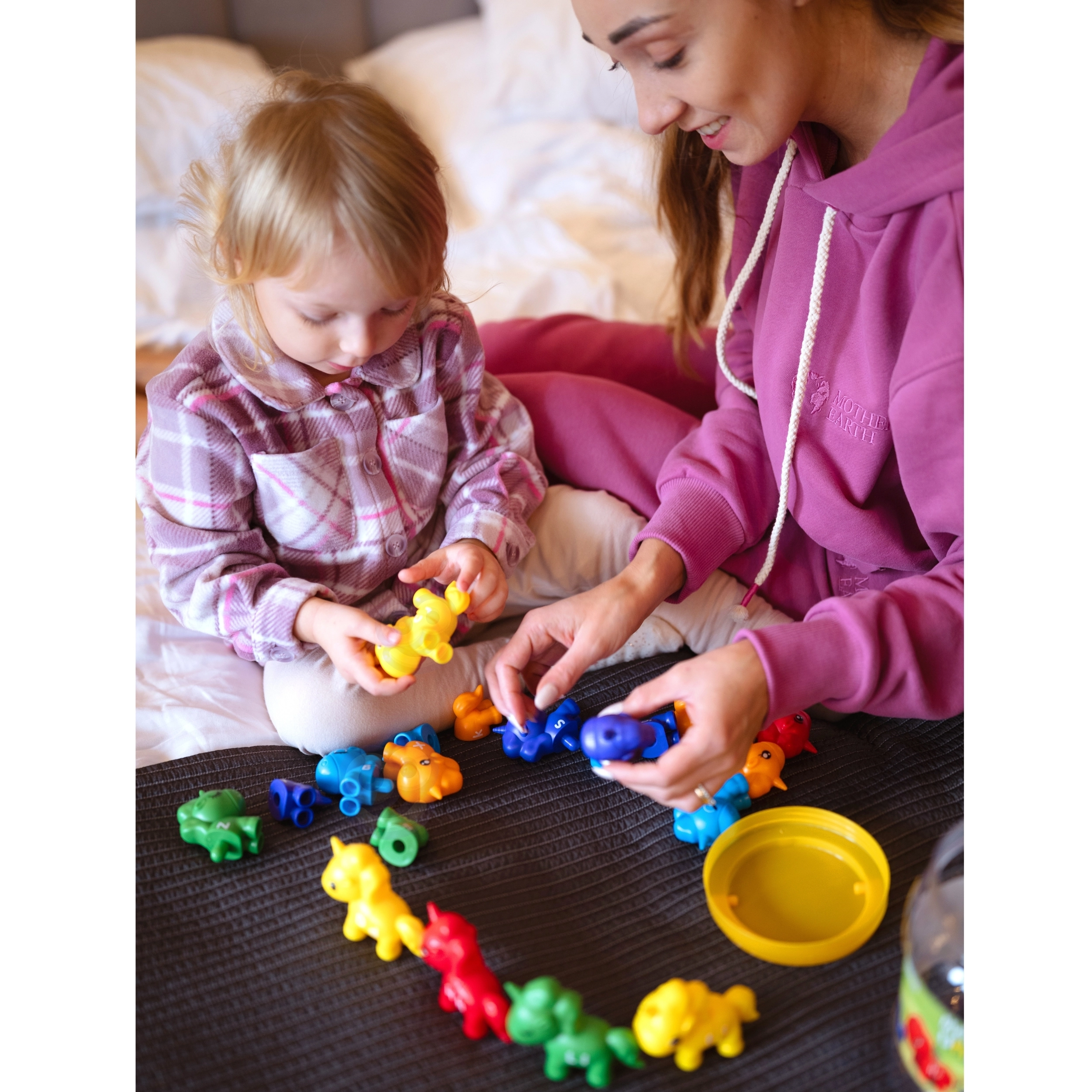 Παιδί και γονιός μπορούν να παίξουν μαζί με τα πολύχρωμα, συνδεόμενα πλαστικά παιχνίδια σε σχήμα μονόκερου, ενισχύοντας τον συντονισμό κινήσεων.