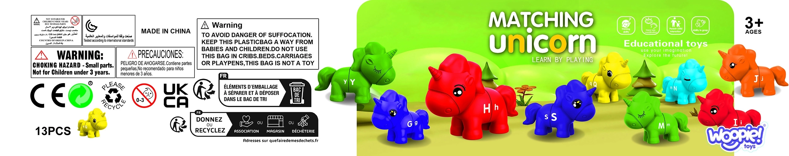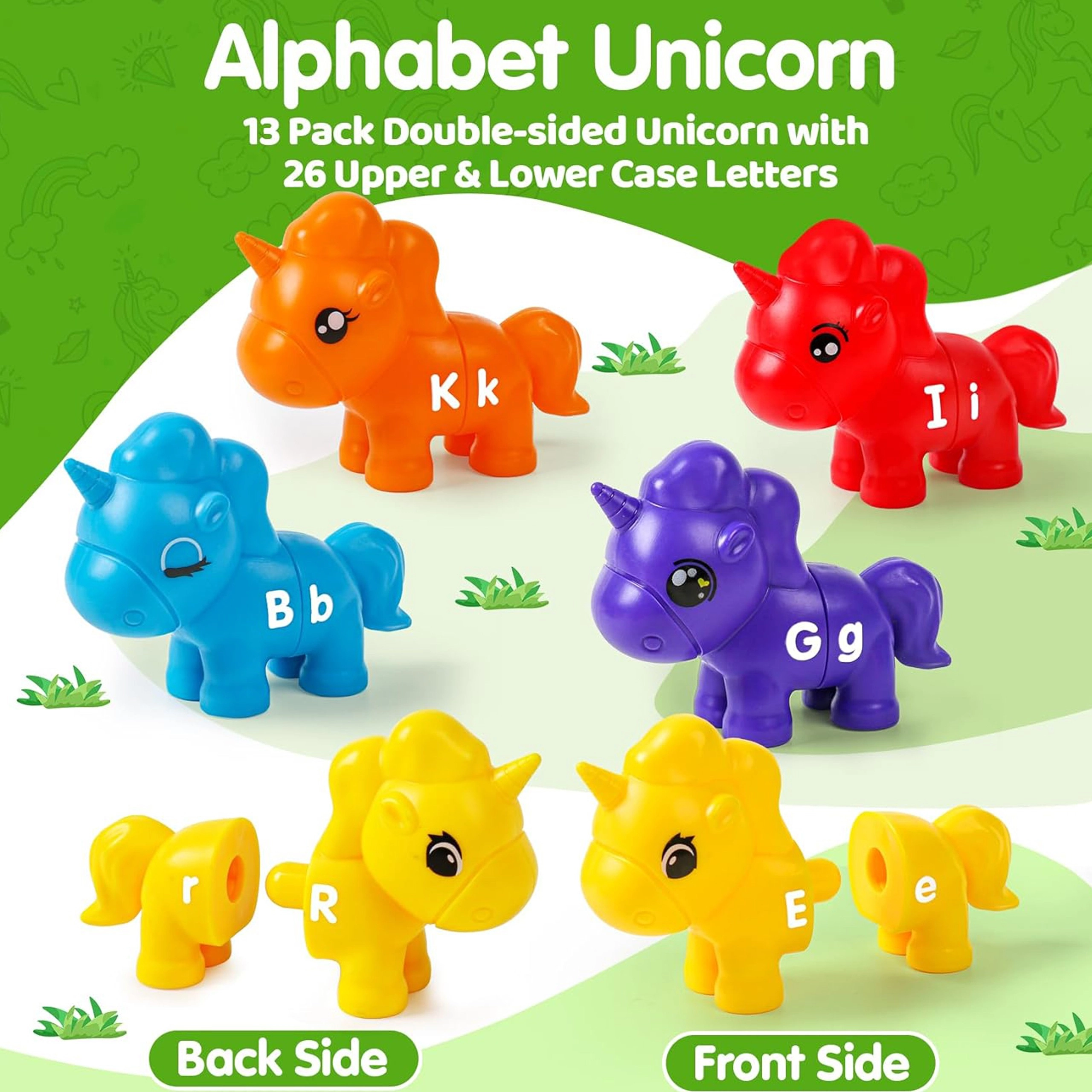 Το σετ πολύχρωμων μονόκερων έχει σχεδιαστεί για να προσφέρει ατελείωτες ώρες διασκεδαστικής και εκπαιδευτικής απασχόλησης. Με αυτά τα παιχνίδια, τα παιδιά μπορούν να μάθουν το αλφάβητο ενώ συνδέουν κομμάτια με σήμανση γραμμάτων.