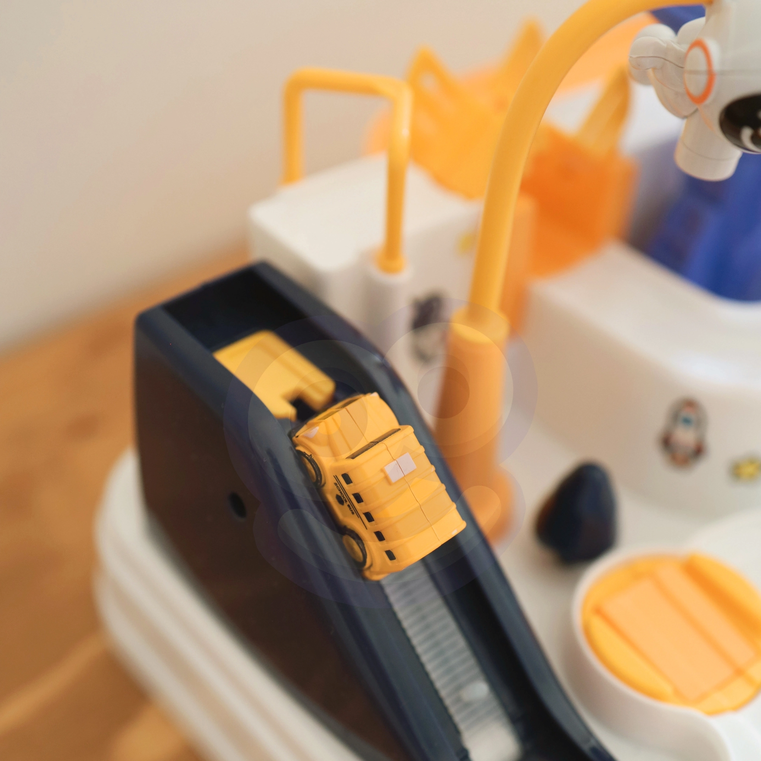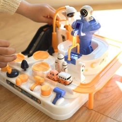 Ο διαστημικός σταθμός μετατρέπεται σε δραστήριο πεδίο παιχνιδιού: τα παιδιά σχεδιάζουν τη διαδρομή, ξεπερνούν εμπόδια και με κουμπιά και χειριστήρια κατευθύνουν τα αυτοκινητάκια σε ράμπες, ανελκυστήρες και περιστρεφόμενες πλατφόρμες. Ο μαγνητικός πύραυλος μεταφέρει τα οχήματα «από αέρος» στη γερανή-γέφυρα, η οποία μπορεί να κατεβαίνει και να ανεβαίνει κατά βούληση.