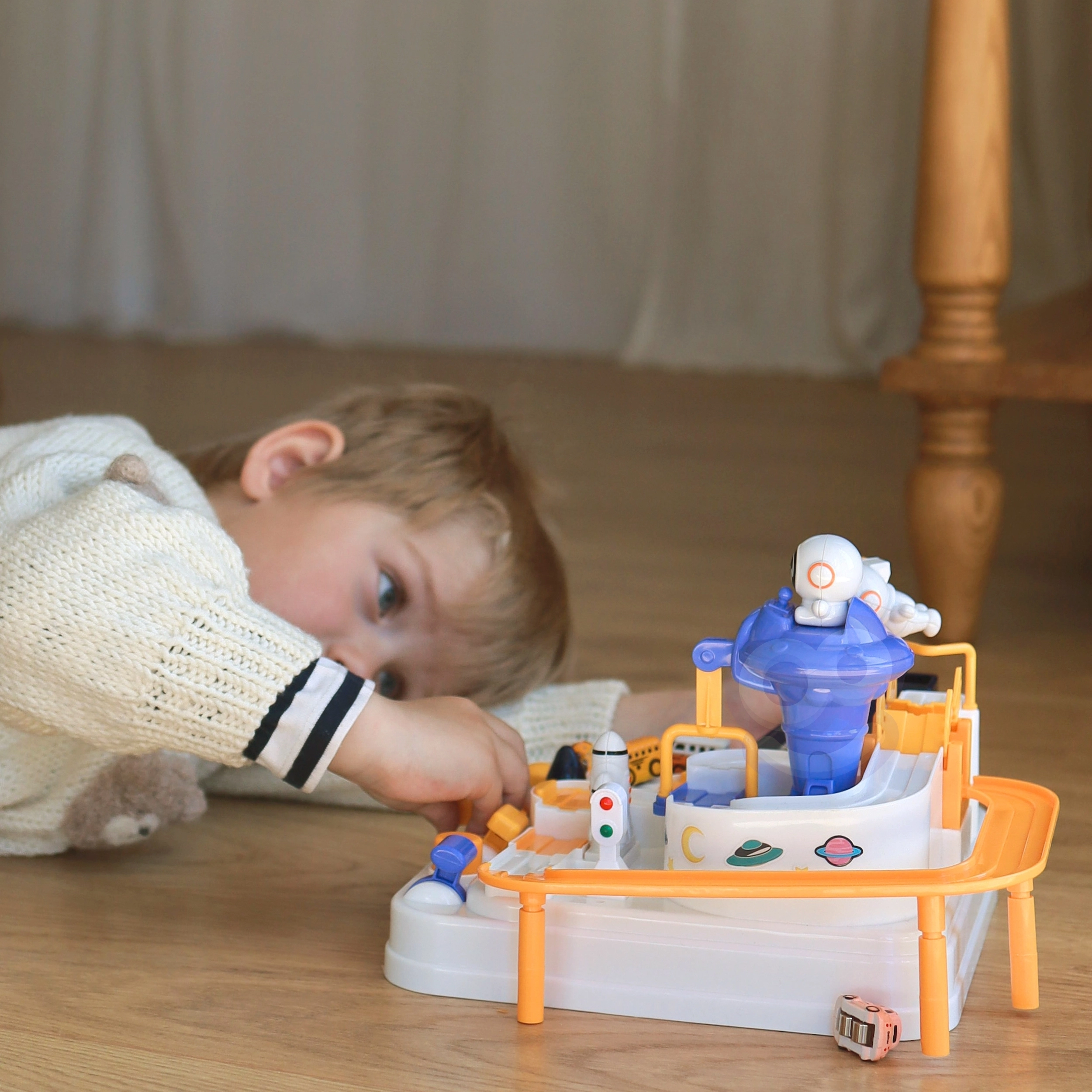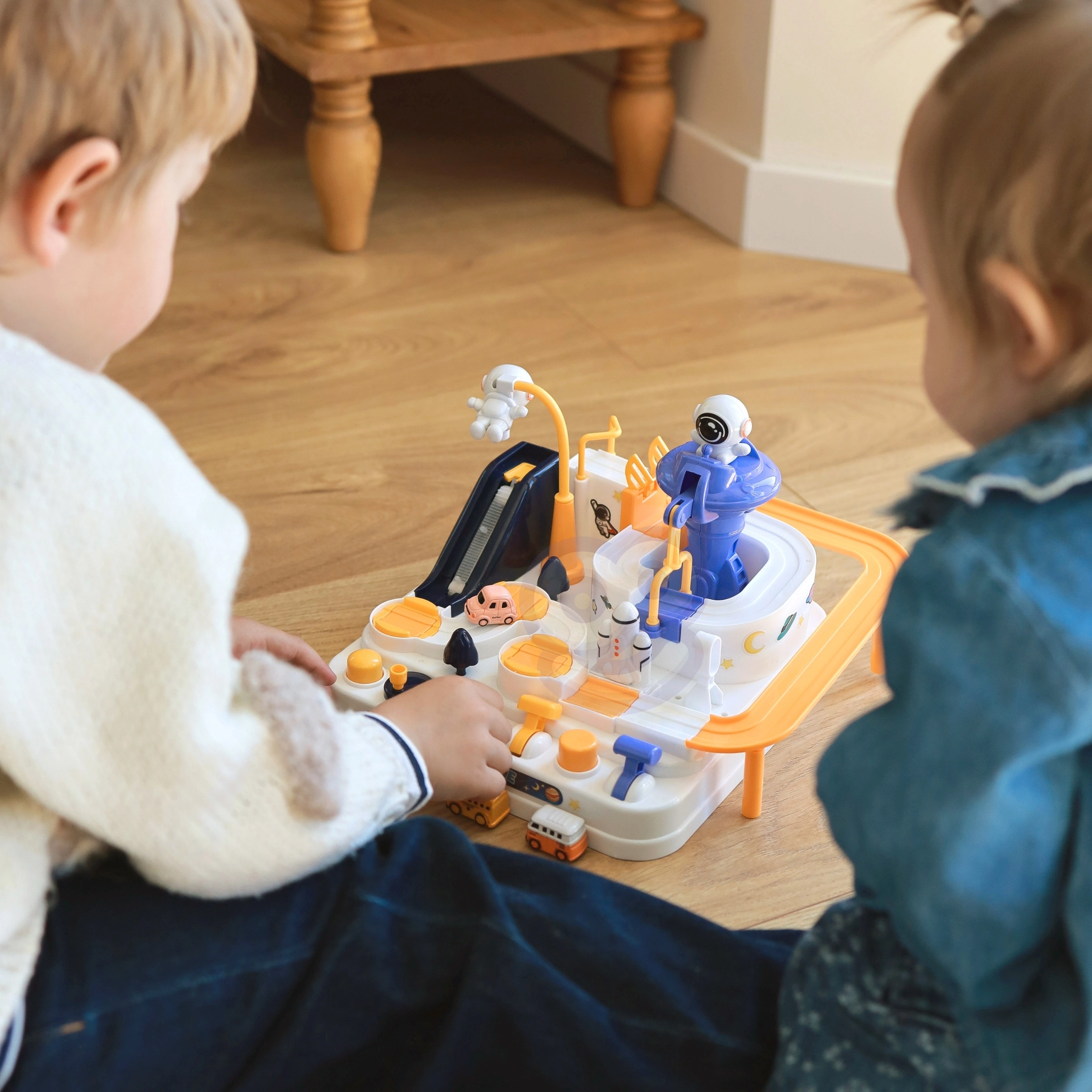 Στη συσκευασία υπάρχουν τρία αυτοκινητάκια (σχέδιο τυχαίας επιλογής), ώστε τα παιδιά να απολαμβάνουν ατομικές διαδρομές, σκυταλοδρομίες και αγώνες χρόνου σε διαφορετικές διαδρομές του διαστημικού σταθμού.