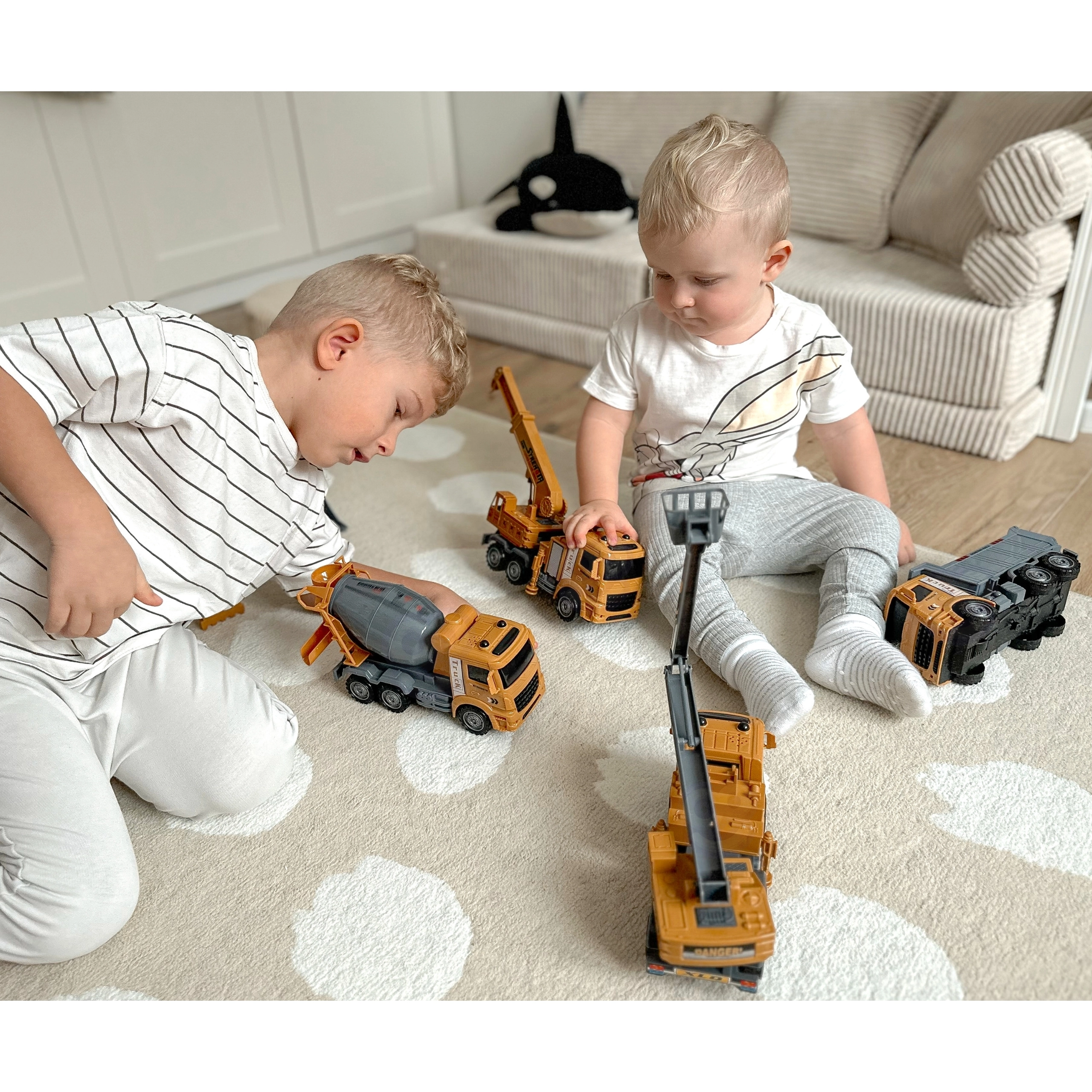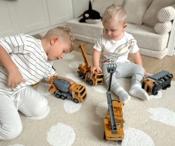 Με αυτό το σετ, τα παιδιά μπορούν να εξερευνήσουν διάφορες κατασκευαστικές δραστηριότητες και να αναπτύξουν τη φαντασία τους. Περιλαμβάνει έξι μεγάλα οχήματα, το καθένα με κινούμενα μέρη και ρεαλιστικές λεπτομέρειες που μιμούνται πραγματικά μηχανήματα έργου.