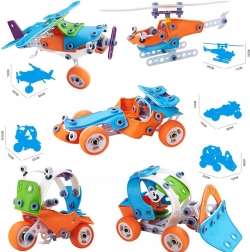 Αυτό το σετ περιλαμβάνει 118 κομμάτια, που επιτρέπουν τη δημιουργία διαφόρων οχημάτων, όπως μπουλντόζα, ελικόπτερο, αεροπλάνο ή καρτ. Βοηθά στην ανάπτυξη της δημιουργικότητας και των χειρωνακτικών ικανοτήτων των παιδιών, επιτρέποντάς τους να ανακαλύψουν τον κόσμο της κατασκευής και του σχεδιασμού με τεράστια ικανοποίηση και χαρά.