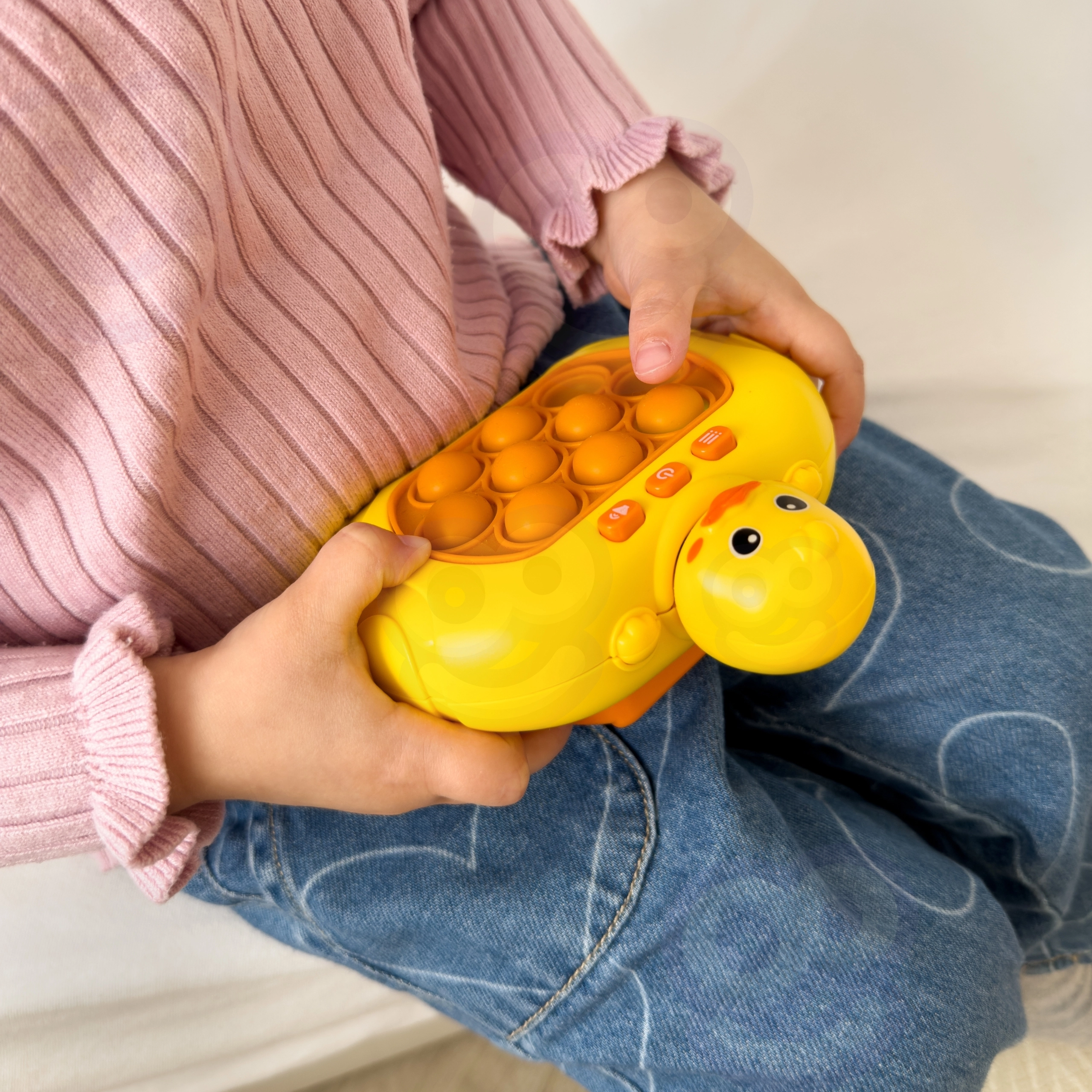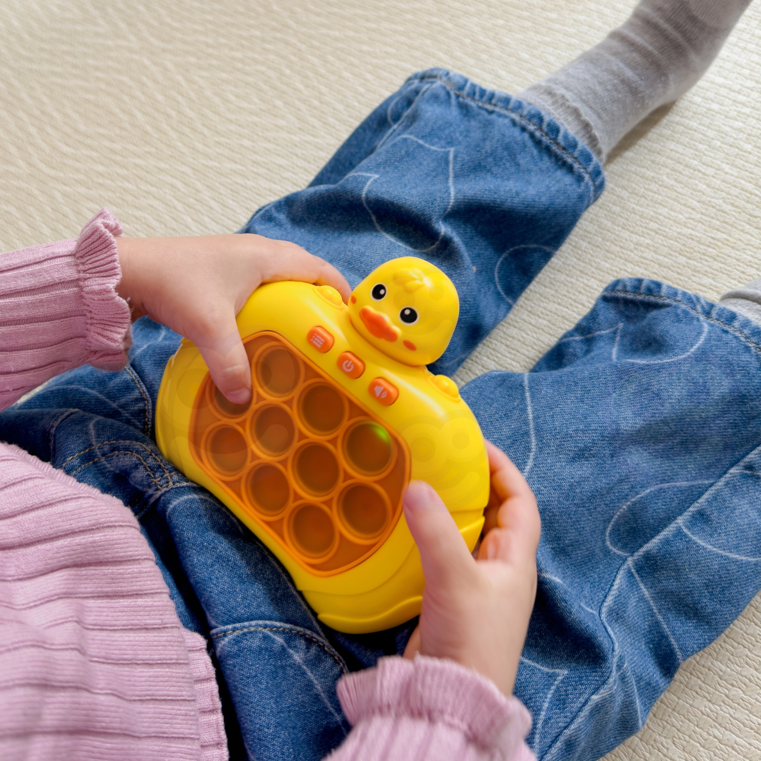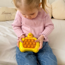 Το χαριτωμένο παπάκι με pop-it φυσαλίδες προσφέρει κάτι παραπάνω από απλό πάτημα – χάρη στα ενσωματωμένα κουμπιά και τους ήχους, φέρνει 4 διασκεδαστικές λειτουργίες παιχνιδιού που παρακινούν τα παιδιά να κινούν τα δάχτυλα, εκπαιδεύουν τη μνήμη και βελτιώνουν την αντίληψη. Ξεκούραση και μάθηση σε ένα compact πακέτο.