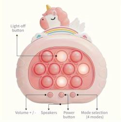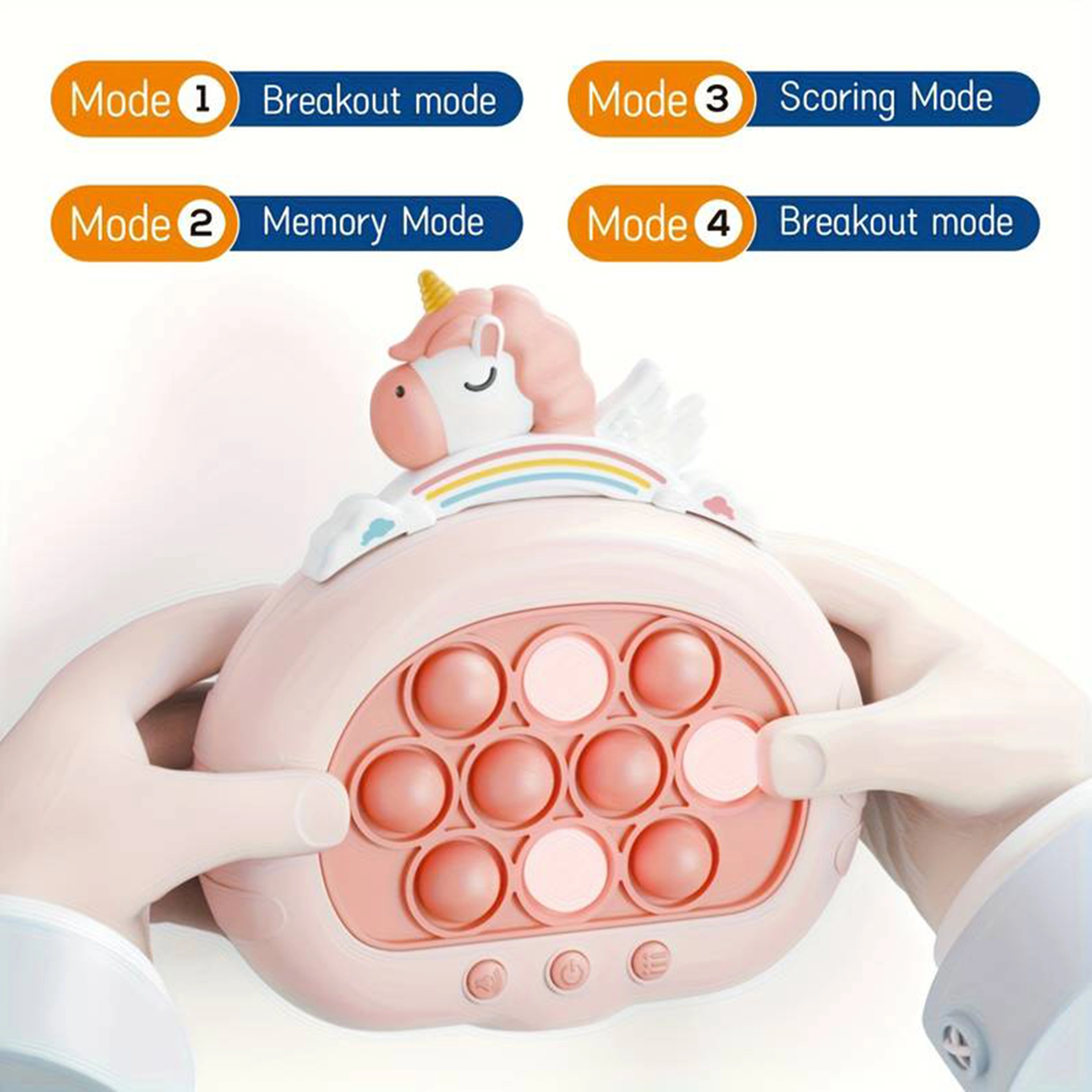 Το ηλεκτρικό παιχνίδι Μονόκερος Pop It είναι εξαιρετική διασκέδαση και μέσο ανάπτυξης για παιδιά από τριών ετών. Παιδιά και ενήλικες απολαμβάνουν το πάτημα των φυσαλίδων και τον ανταγωνισμό. Η παίχνη Pop It προσφέρει διάφορα modes παιχνιδιού που καλλιεργούν διαφορετικές δεξιότητες: