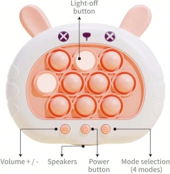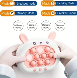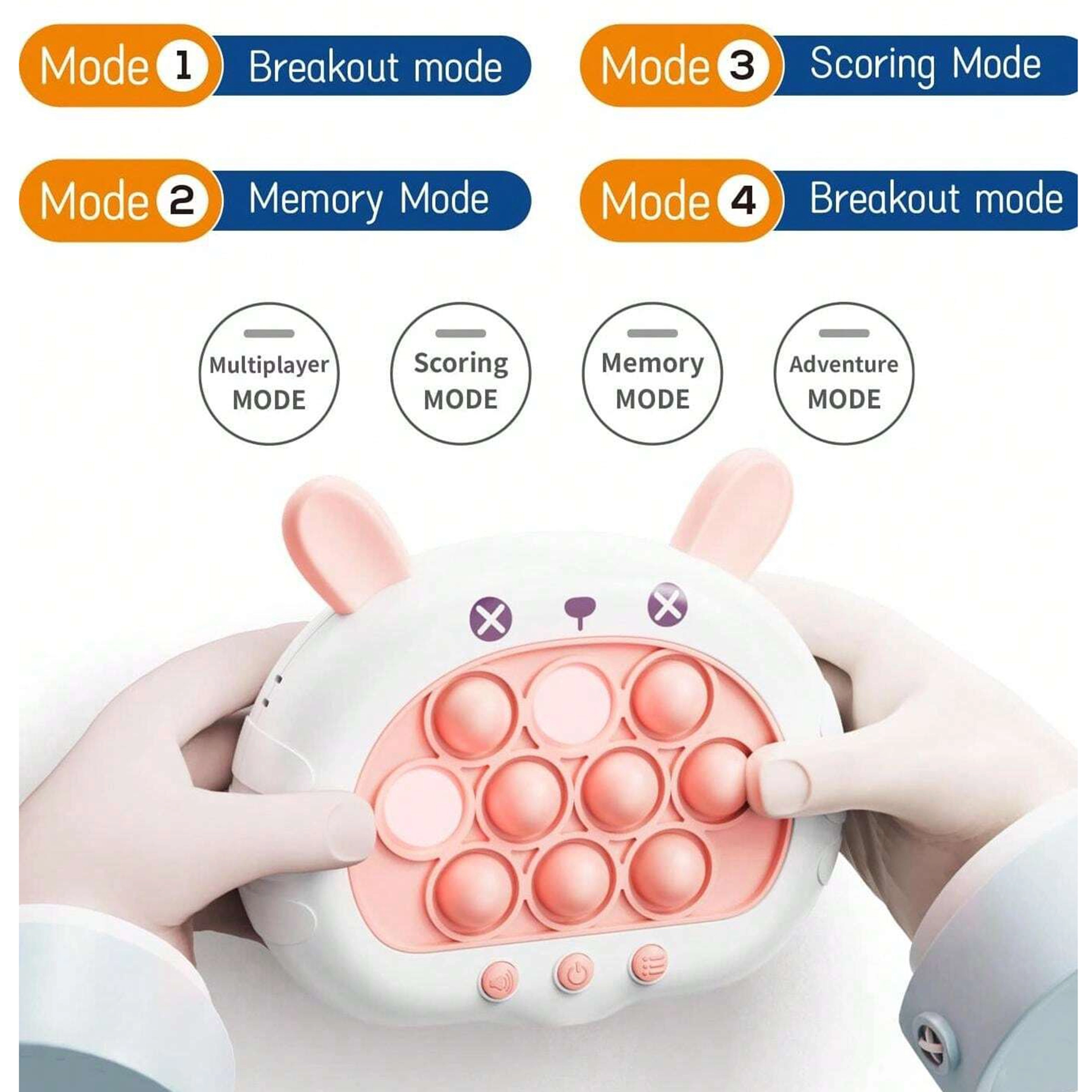Το διασκεδαστικό και διαδραστικό παιχνίδι POP IT Κουνελάκι χαρίζει απόλαυση σε παιδιά και ενήλικες. Αναπτύσσει το μυαλό, τις δεξιότητες λεπτής κινητικότητας, τον συντονισμό χεριού-ματιού και βοηθά στην αντιμετώπιση του στρες. Αυτό το παιχνίδι προσφέρει τέσσερις διαφορετικές λειτουργίες παιχνιδιού που κρατούν όλους σε εγρήγορση.