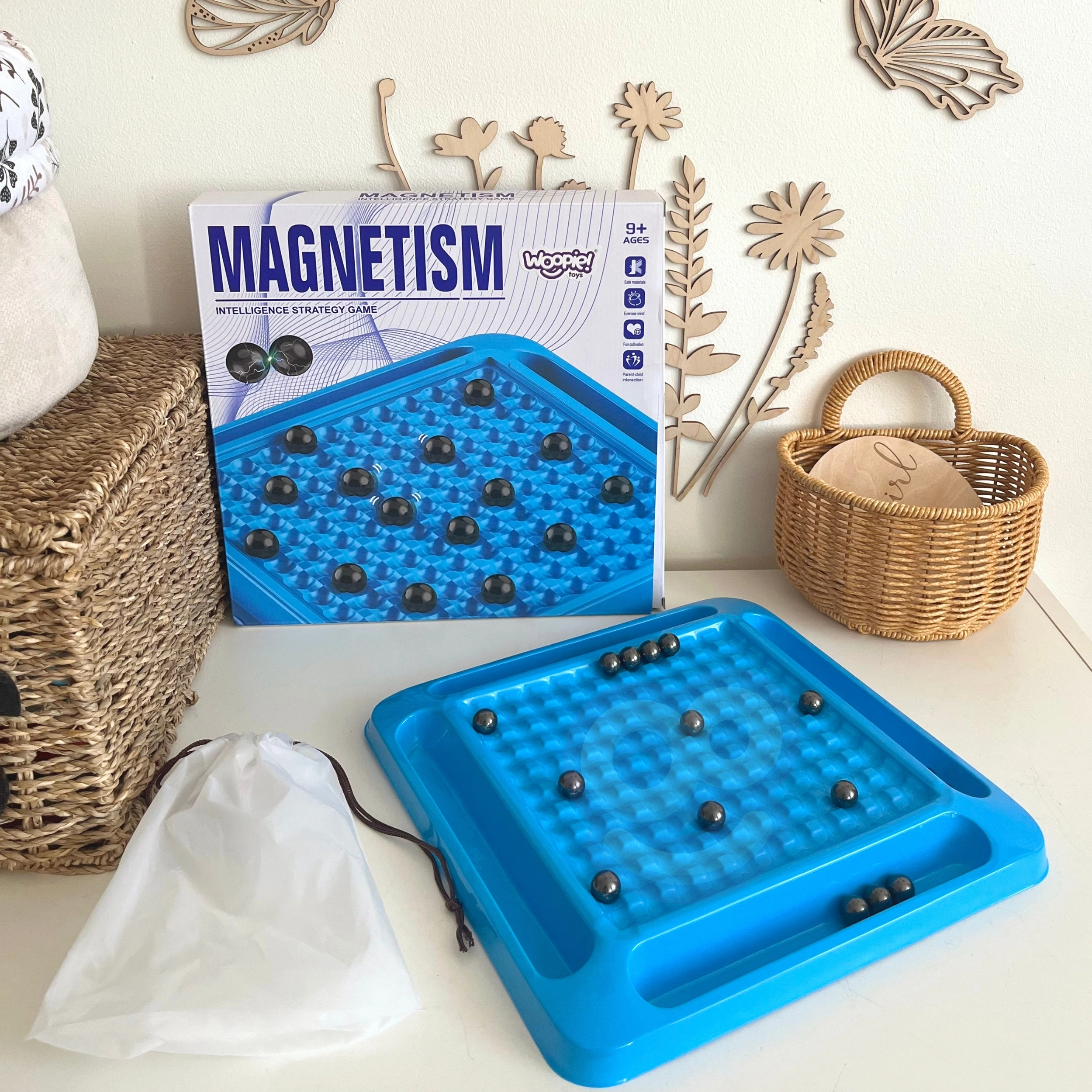 Τοποθετείτε εναλλάξ τις μαγνητικές σας μπίλιες και αξιοποιείτε την έλξη τους. Όποιος απαλλαγεί πρώτος από όλες τις μπίλιες κερδίζει – αλλά ένα λάθος βήμα μπορεί να τα ανατρέψει όλα.