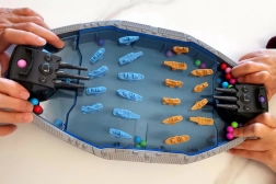 Πολύχρωμα πλοία και υποβρύχια πάνω στο ταμπλό δημιουργούν μια ρεαλιστική μάχη που βυθίζει τα παιδιά στο παιχνίδι από την πρώτη βολή.
