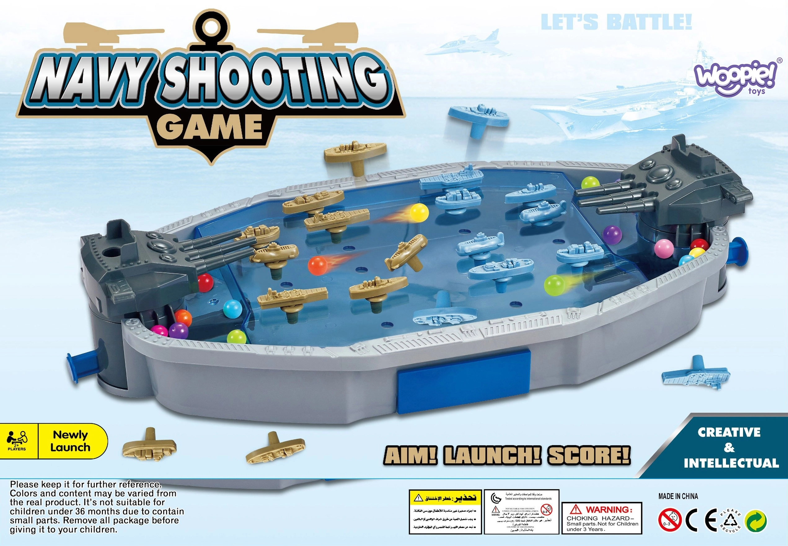 Μπείτε στον κόσμο των ναυτικών μαχών με ένα διαδραστικό επιτραπέζιο παιχνίδι που συνδυάζει δεξιότητα, γρήγορη αντίδραση και ανταγωνισμό. Οι κρυφοί εκτοξευτές μπιλίων κάτω από την επιφάνεια προσθέτουν ένταση στις μάχες, ενώ τα πολύχρωμα πλοία λειτουργούν ως ελκυστικοί στόχοι. Από την πρώτη βολή έως το τελευταίο χτύπημα, η διασκέδαση είναι γρήγορη και ξεκάθαρη – ιδανική για σύντομες αλλά και επαναλαμβανόμενες παρτίδες.