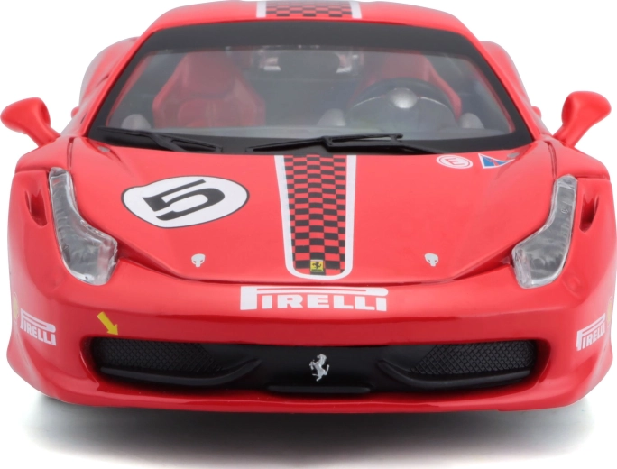 Απολαύστε το λεπτομερώς κατασκευασμένο μεταλλικό μοντέλο Ferrari 458 Challenge σε κλίμακα 1:24, ιδανικό για συλλέκτες και μικρούς λάτρεις των αγώνων. Διαθέτει ανοιγόμενα μέρη, λειτουργική περιστροφή των τροχών μέσω του τιμονιού και ρεαλιστικές αγωνιστικές λεπτομέρειες σε ελκυστικό κόκκινο χρώμα.