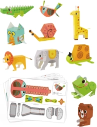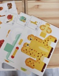 Αυτό το δημιουργικό σετ προσφέρει όλα όσα χρειάζονται τα παιδιά για να φτιάξουν πολύχρωμα 3D χάρτινα ζωάκια. Σε 5 κάρτες θα βρουν τα κομμάτια για 10 μοντέλα, τα οποία μπορούν να ξεσπάσουν εύκολα με το χέρι – χωρίς χρήση ψαλιδιού. Η συναρμολόγηση είναι διαισθητική: δίπλωμα, επάλειψη κόλλας στα σημειωμένα σημεία και σύνδεση.