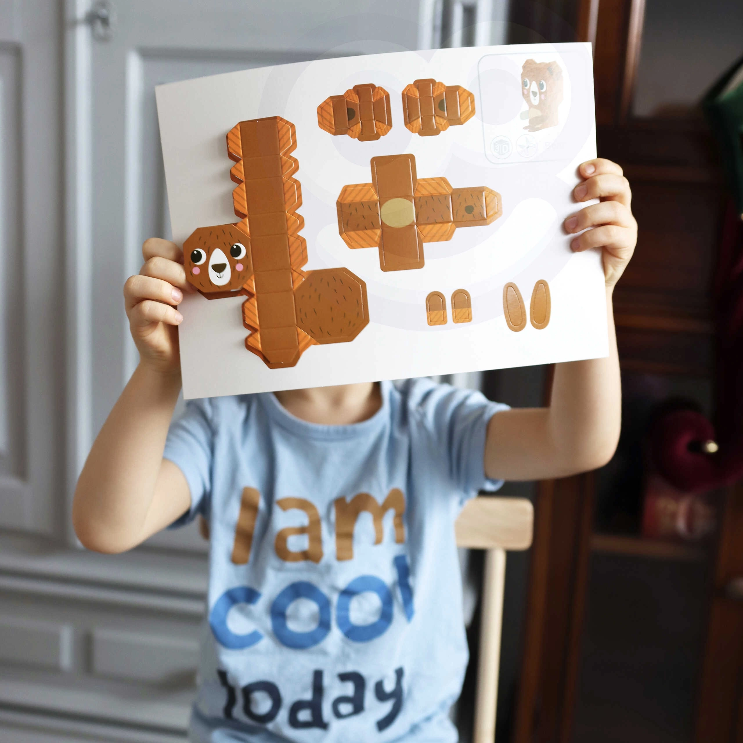 Κάθε φύλλο περιλαμβάνει δύο μοτίβα, συνολικά συναρμολογείτε 10 διαφορετικά ζώα – από ελέφαντα και λιοντάρι μέχρι κροκόδειλο και βάτραχο. Διασκέδαση και μάθηση μαζί.