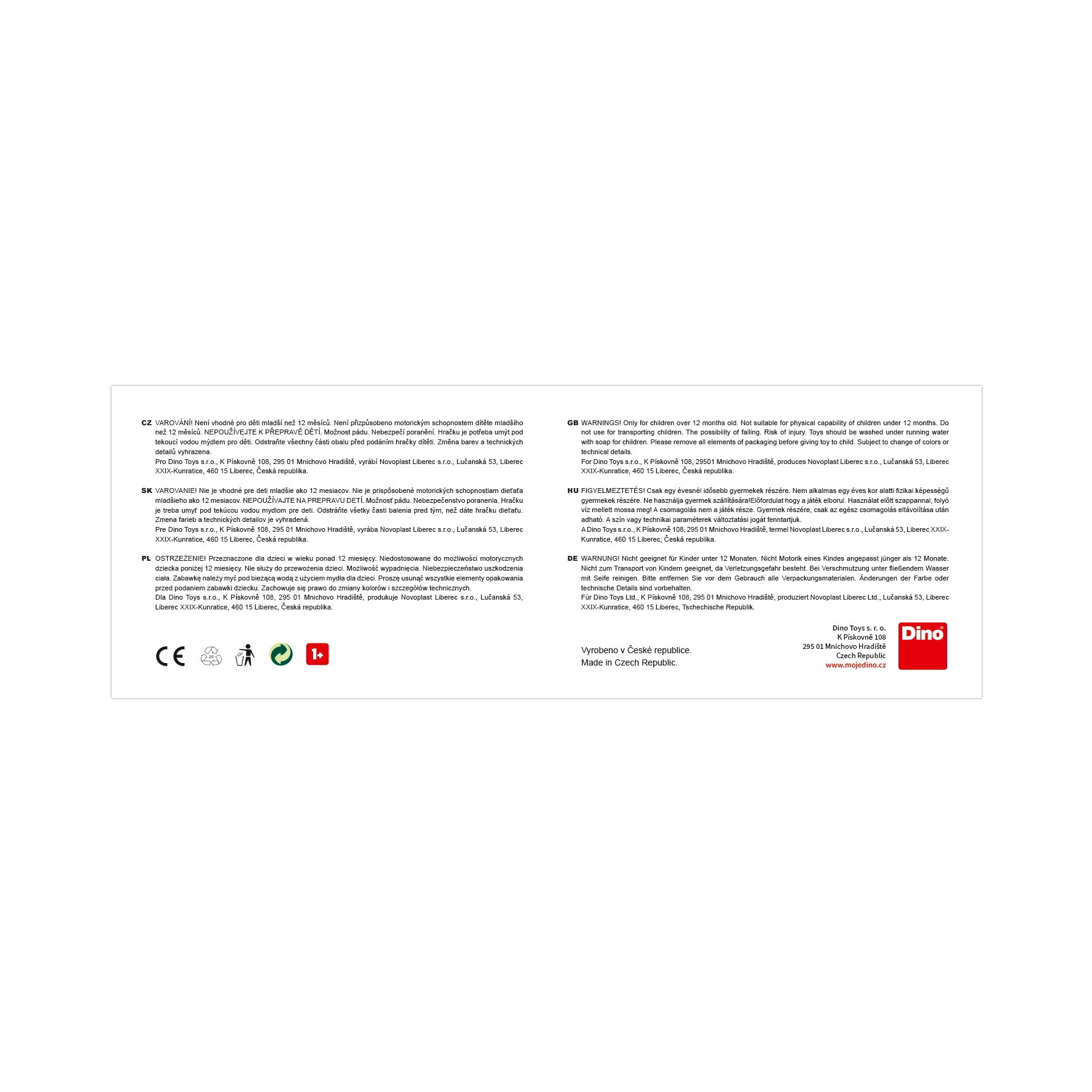 Το παιχνίδι είναι κατασκευασμένο χωρίς τη χρήση φθαλικών ενώσεων και πληροί τα υψηλά πρότυπα ποιότητας των Τσέχων κατασκευαστών. Η εταιρεία Dino Toys είναι γνωστή για τη συνεργασία της με αναγνωρισμένους καλλιτέχνες και μηχανικούς, γεγονός που εγγυάται ποιοτική κατασκευή σε κάθε προϊόν.