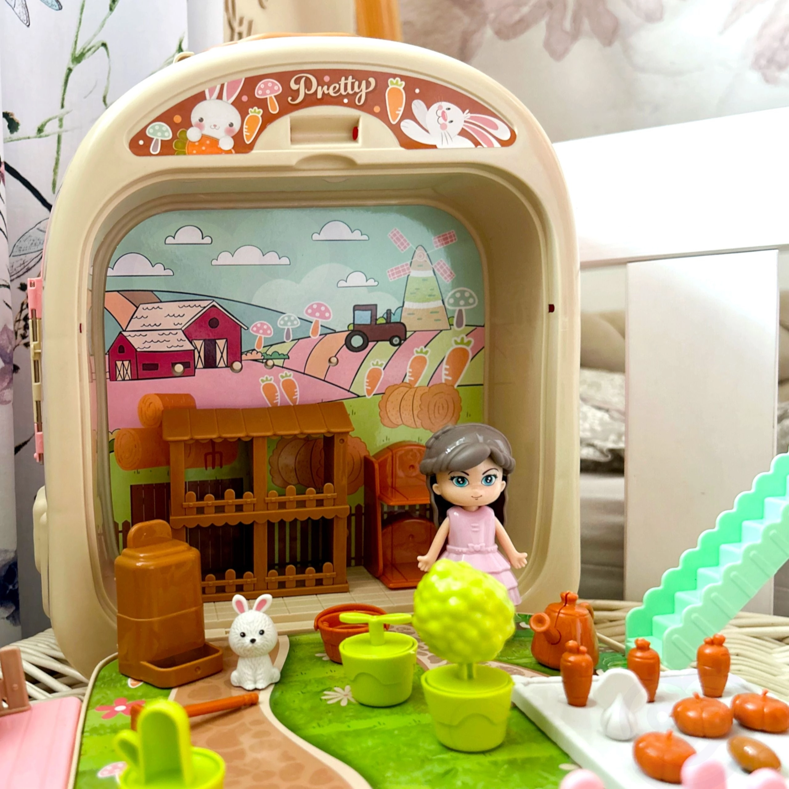 Το σετ περιλαμβάνει ένα πρακτικό φορητό σπιτάκι που επιτρέπει το παιχνίδι οπουδήποτε. Ιδανικό για αποθήκευση και μεταφορά όλων των αγροτικών αξεσουάρ.