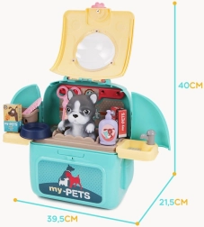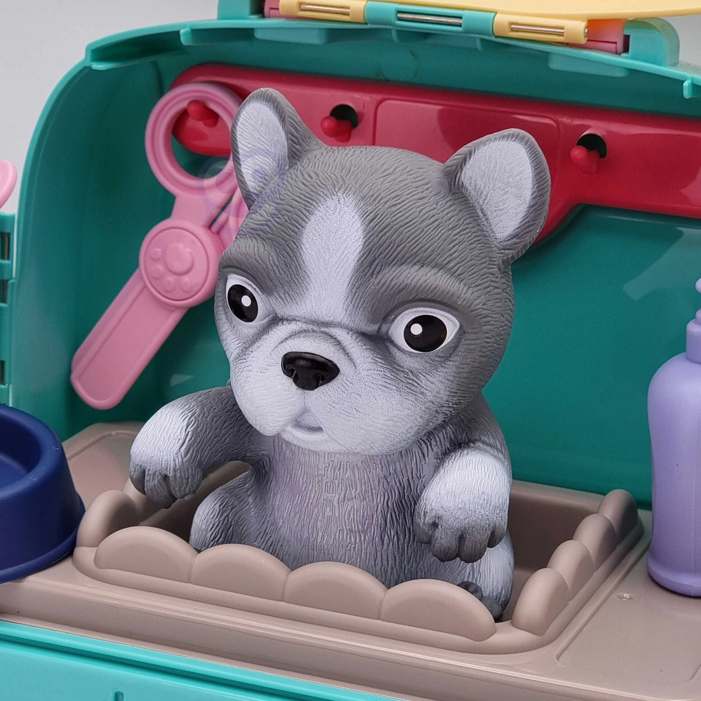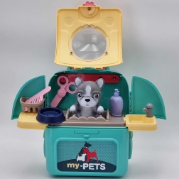 Περιλαμβάνει φιγούρα σκύλου, χτένα, ψαλιδάκι, καλαθάκι για αξεσουάρ και άλλα.
