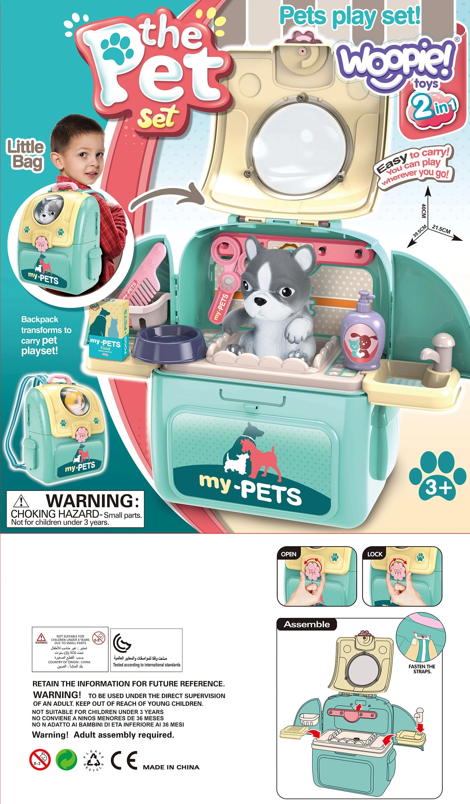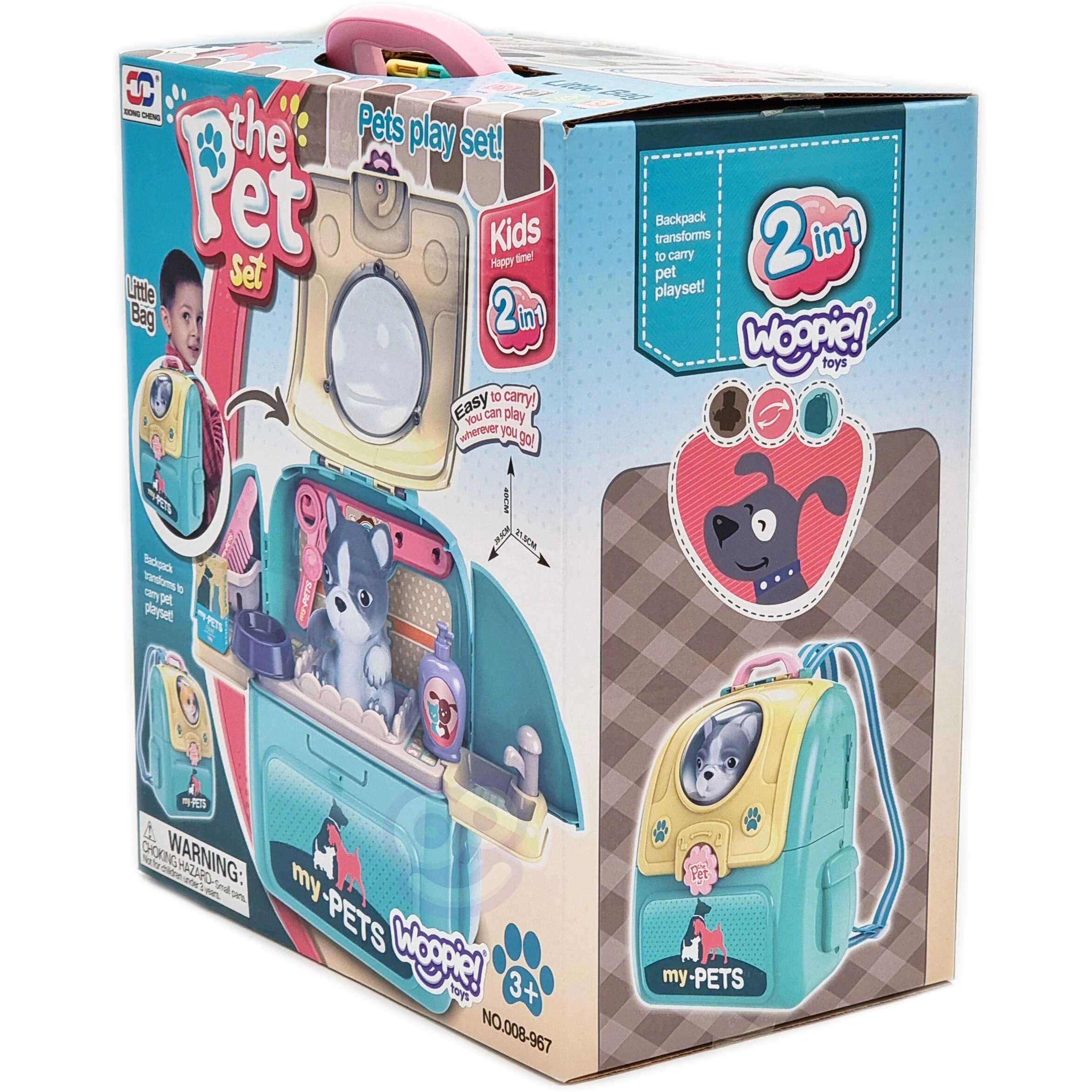 Σας παρουσιάζουμε το φορητό σαλόνι ομορφιάς για παιδιά από τη Woopie, που προσφέρει στο παιδί σας ώρες διασκέδασης και ενασχόλησης με το κατοικίδιό του. Συμπαγής σχεδίαση: Επιτρέπει εύκολη μεταφορά οπουδήποτε, είτε στην παιδική χαρά είτε στο νηπιαγωγείο. Το σακίδιο διαθέτει πρακτική λαβή και ειδικό κούμπωμα για μέγιστη ασφάλεια για το παιχνίδι-σκυλάκι.