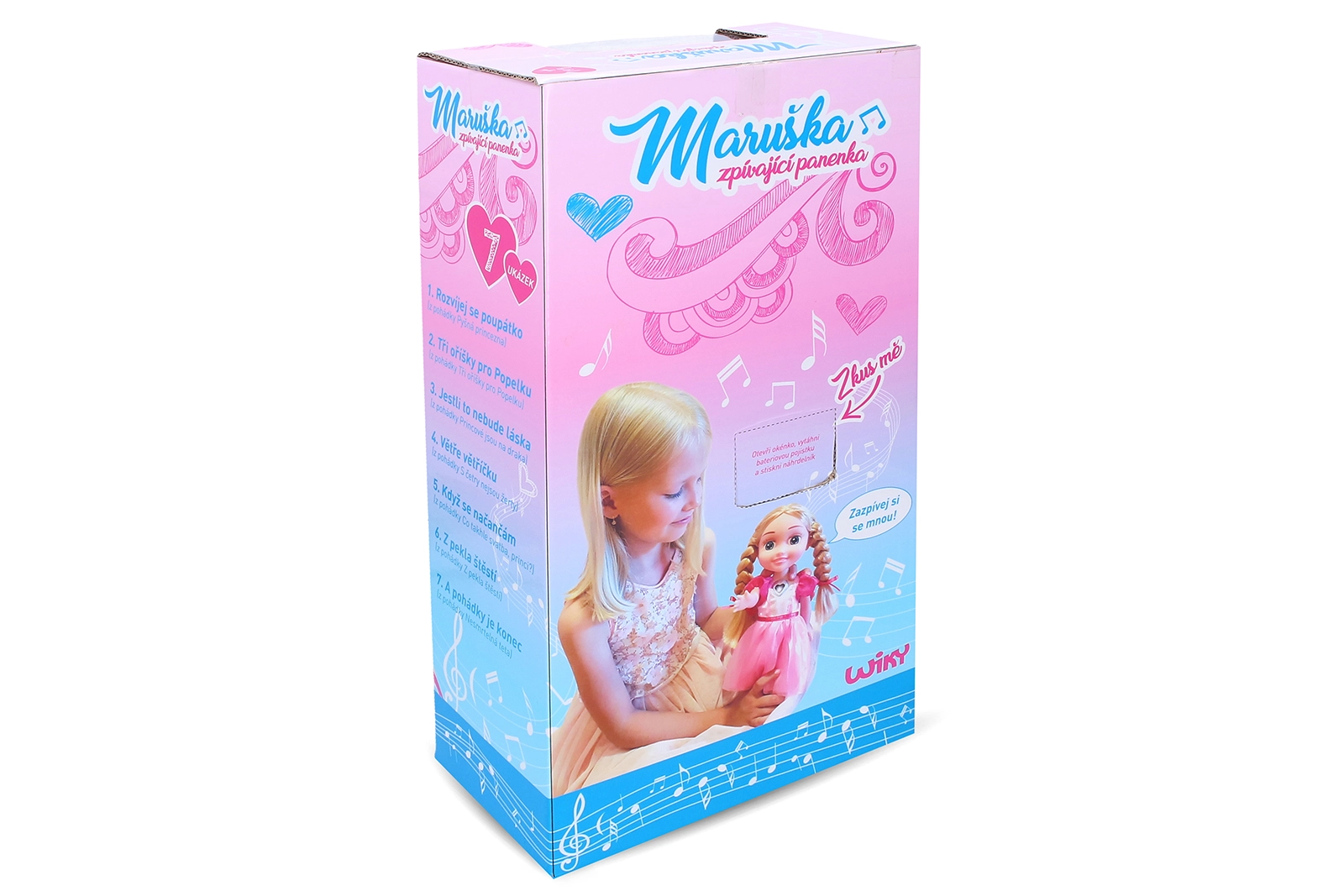 Η τραγουδιστή κούκλα Μαρούσκα προσφέρει μια μαγική εμπειρία με αποσπάσματα από αγαπημένα παραμύθια. Γίνετε μέρος ενός παραμυθένιου κόσμου όπου το καλό πάντα νικά. Το κολιέ της αναβοσβήνει κατά το τραγούδι και μπορείτε να επιλέξετε ανάμεσα σε δύο επίπεδα έντασης για ιδανική ακρόαση.