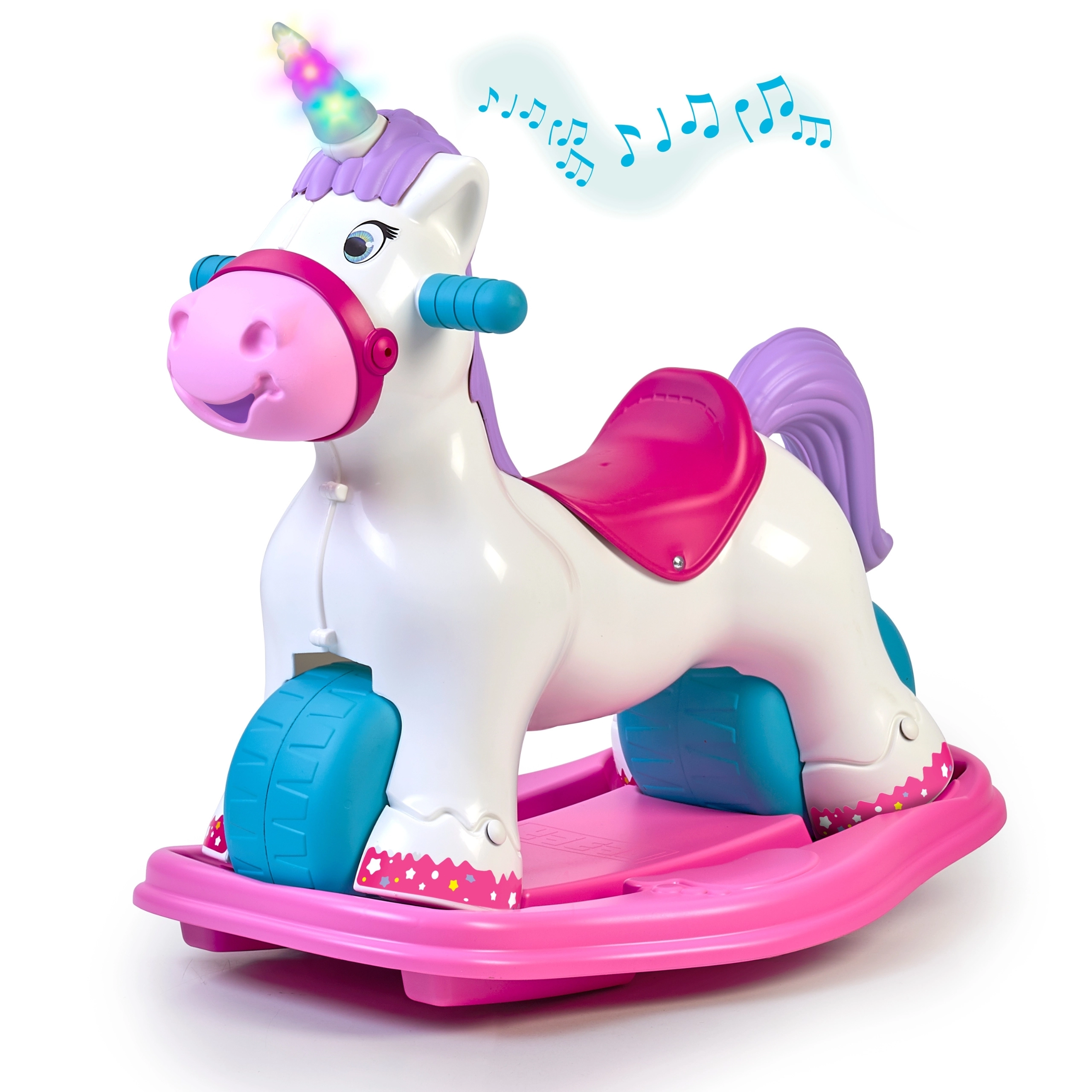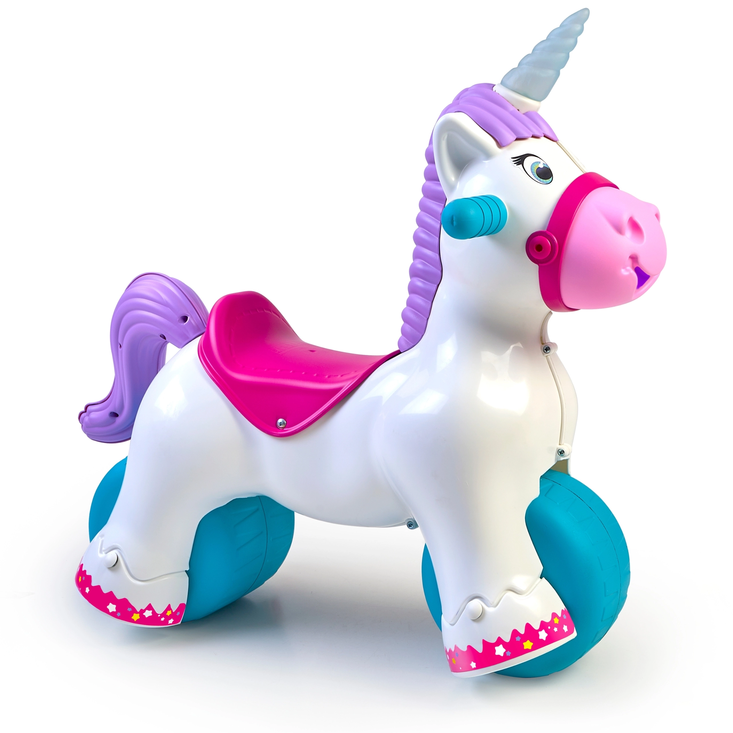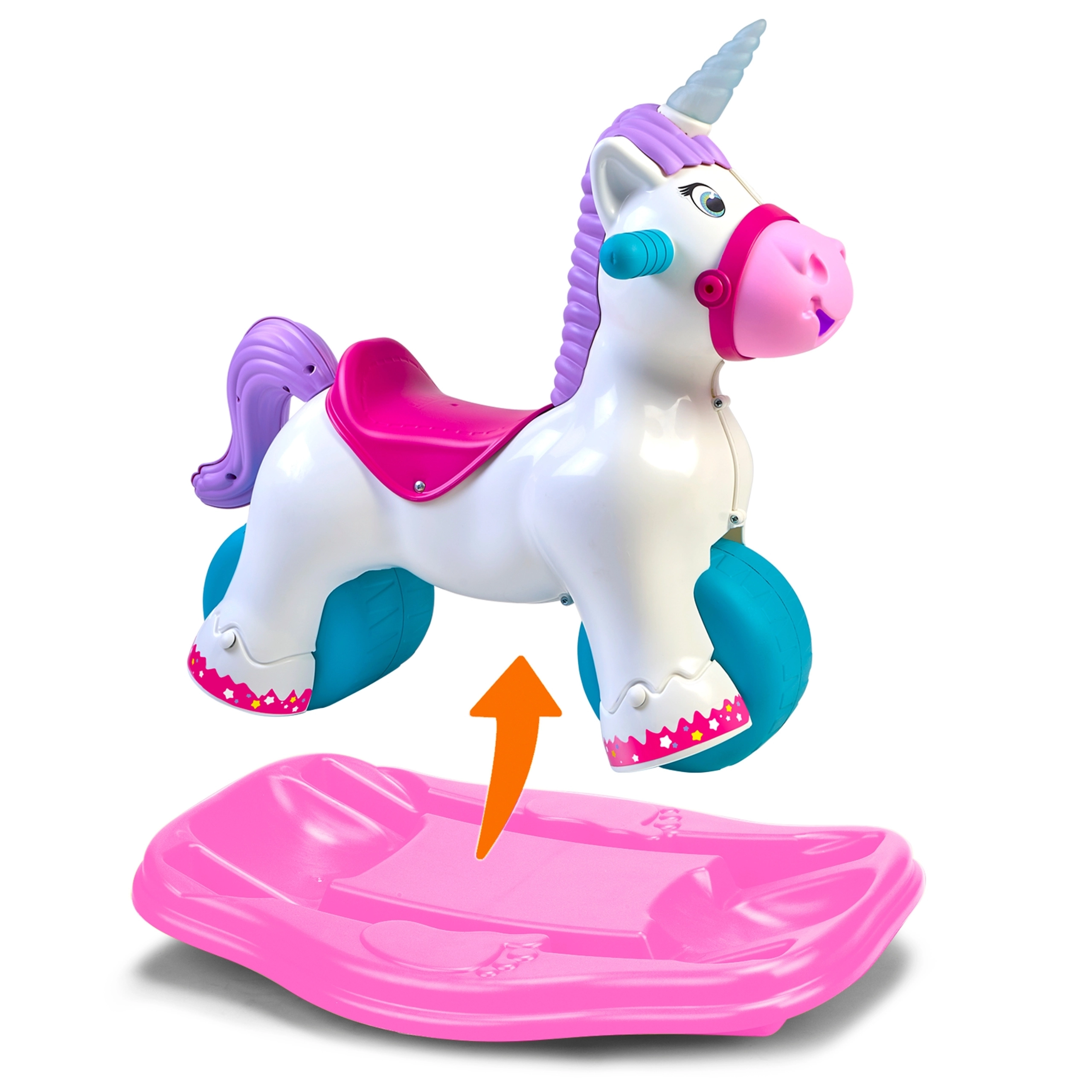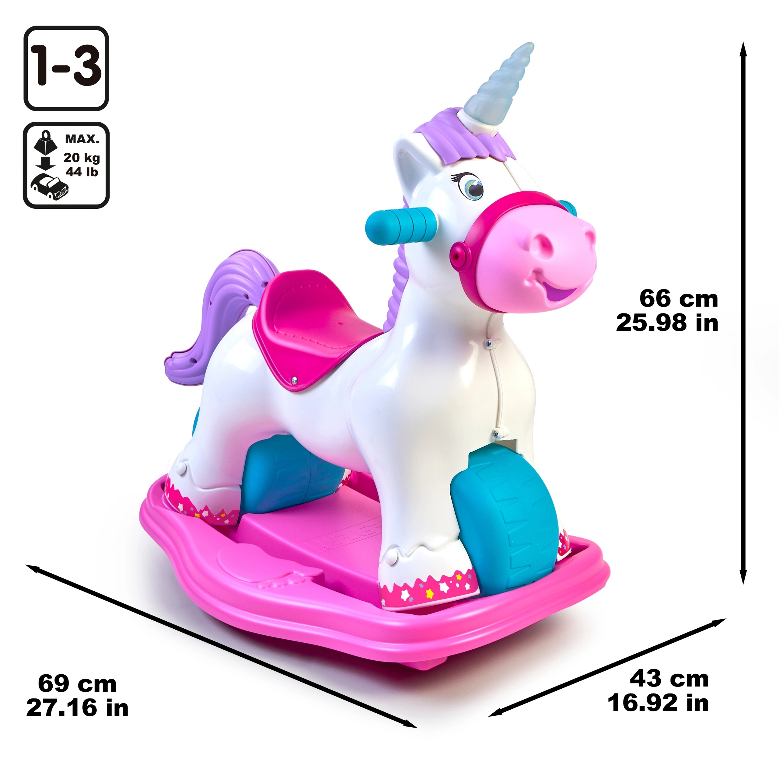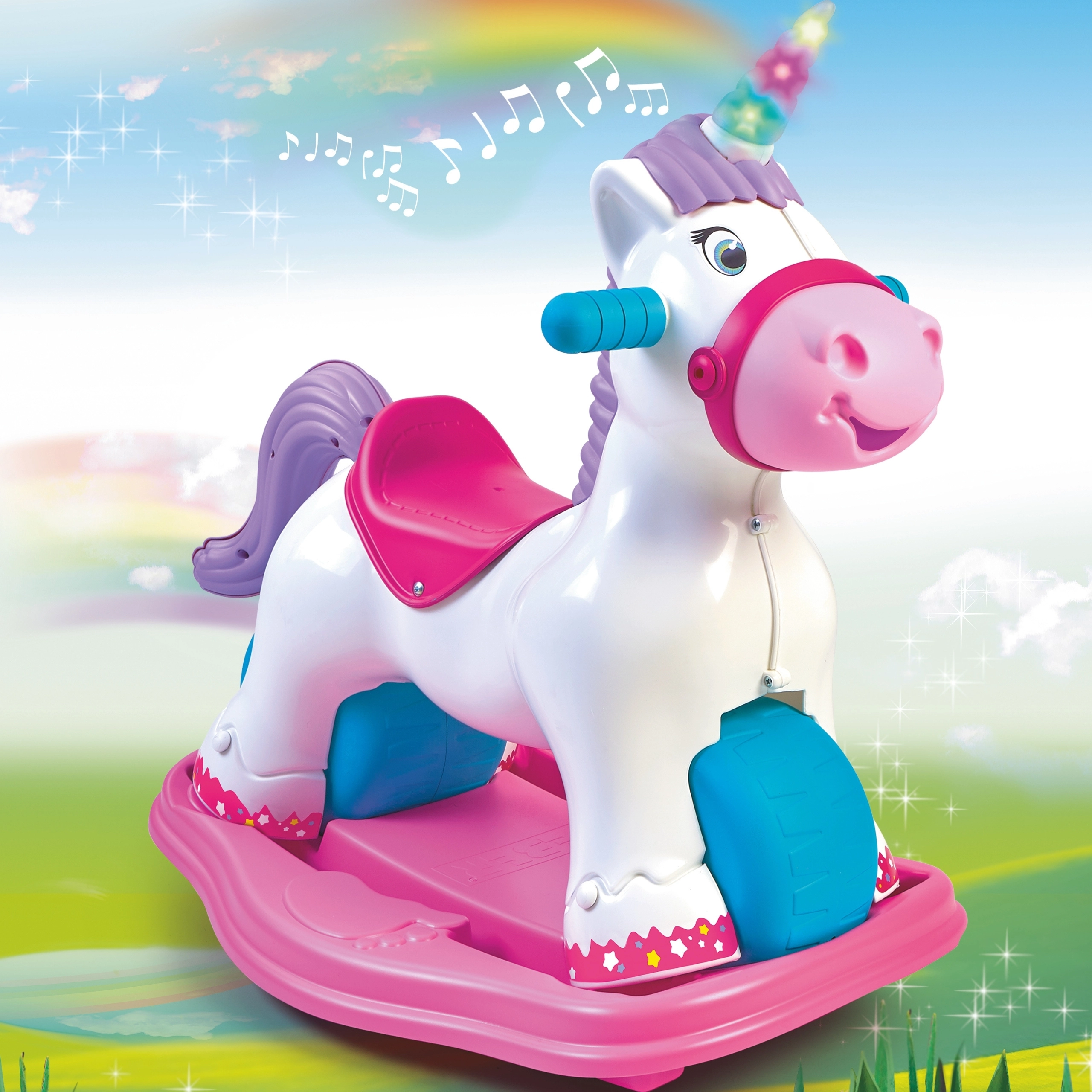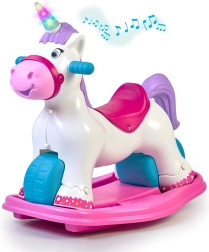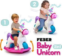 Ο διαδραστικός μονόκερος FEBER μεγαλώνει μαζί με το παιδί σας: μέσα σε λίγες στιγμές τον μετατρέπετε από κουνιστό παιχνίδι σε ποδηλατάκι ισορροπίας. Η φαρδιά βάση και οι μεγάλοι τροχοί προσφέρουν ασφάλεια και σταθερότητα, ενώ το εργονομικό κάθισμα και οι λαβές κρατιούνται άνετα και υποστηρίζουν τη φυσική στάση του σώματος. Ιδανικό για παιχνίδι μέσα και έξω.