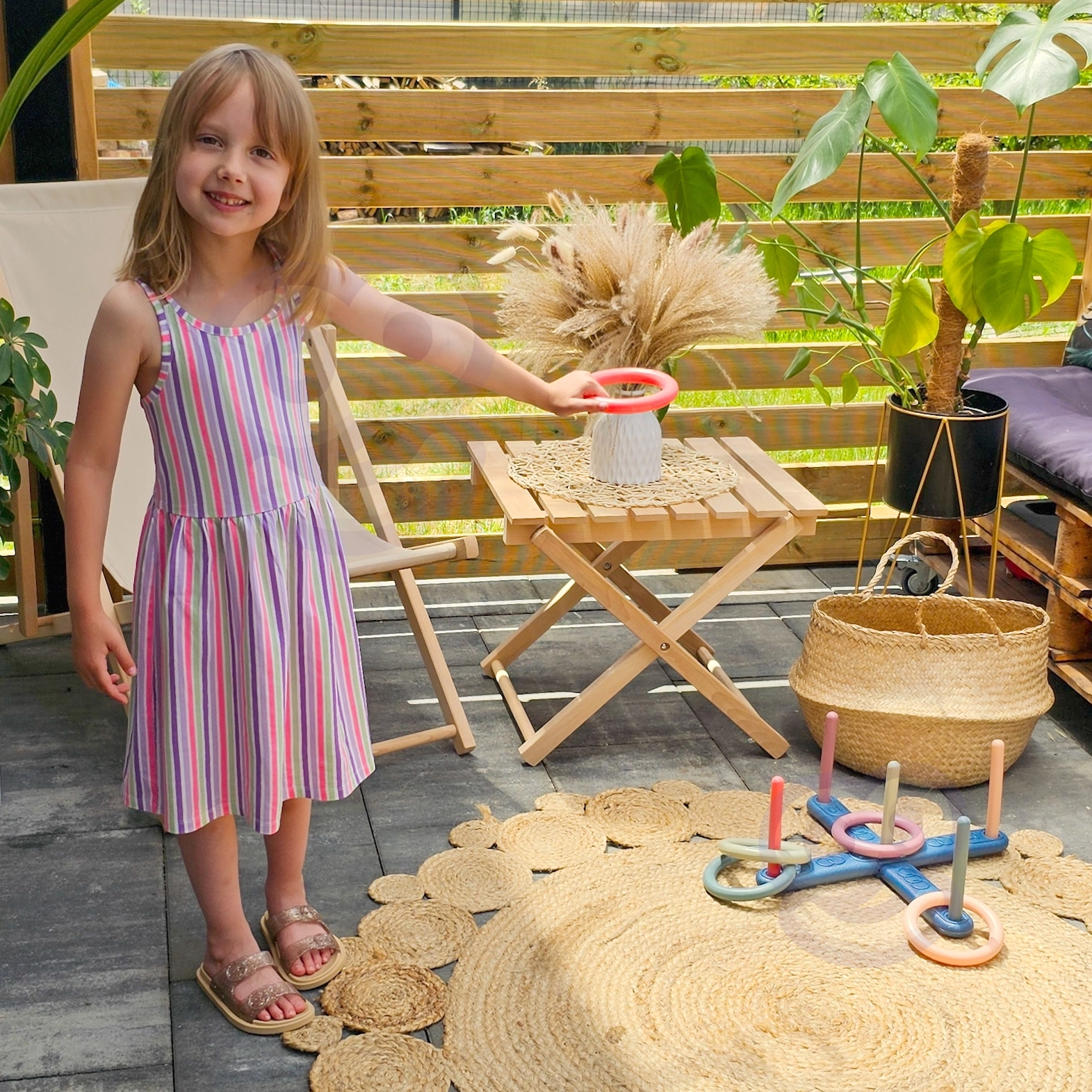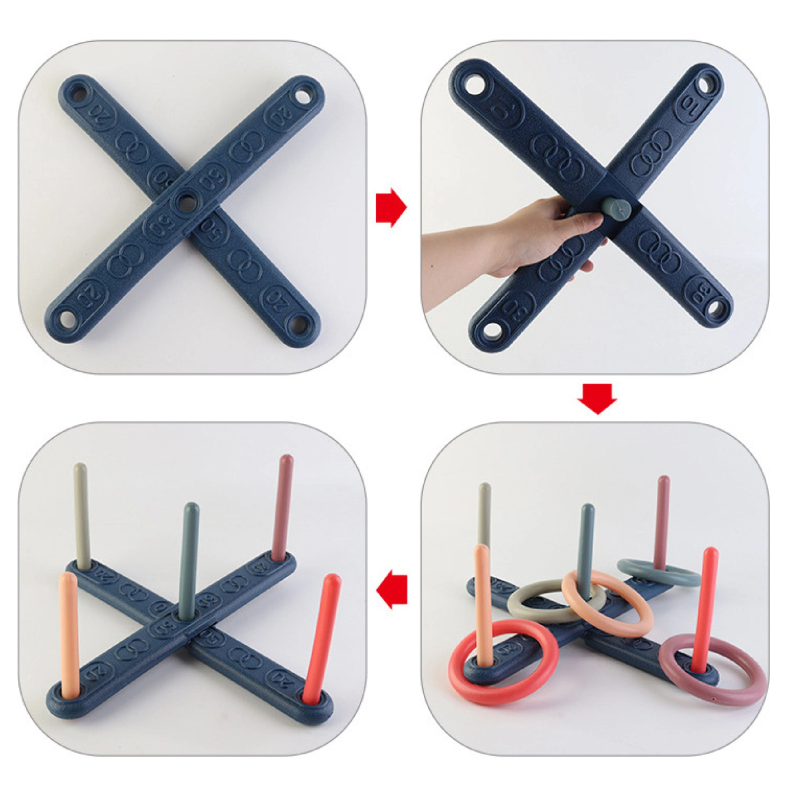 - Περιεχόμενα συσκευασίας: 5 κρίκοι ρίψης, 5 πασαλάκια σε διαφορετικά χρώματα.