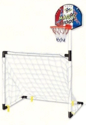 Η αδρή κινητικότητα είναι προτεραιότητα στην κινητική ανάπτυξη του παιδιού. Αποτελεί το πρώτο και ανώτερο στάδιο της κινητικής εξέλιξης. Όσο περισσότερη κίνηση κατακτά το παιδί, τόσο ευκολότερα μαθαίνει και άλλες δεξιότητες. Η αδρή κινητικότητα περιλαμβάνει όλες τις κινήσεις που ενεργοποιούν ολόκληρο το σώμα ή το μεγαλύτερο μέρος του. Πλεονέκτημα είναι ότι το προϊόν μπορεί να χρησιμοποιηθεί τόσο στο σπίτι όσο και έξω – το παιδί σας θα μπορεί να παίζει οπουδήποτε, ανεξάρτητα από τον καιρό. Το ύψος για το μπάσκετ είναι 115 cm, οπότε είναι ιδανικό για τους πιο μικρούς παίκτες. Χάρη στον συνδυασμό δύο αθλημάτων στο ίδιο σημείο, το παιδί επιλέγει μόνο του τι θέλει να παίξει κάθε στιγμή.