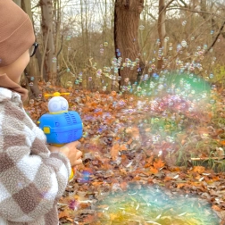Αυτή η μηχανή φυσαλίδων ενεργοποιείται εύκολα με το πάτημα ενός κουμπιού, ξεκινώντας αυτόματα να δημιουργεί φυσαλίδες. Χάρη στον εντυπωσιακό φωτισμό το παιχνίδι είναι ελκυστικό μέρα και νύχτα. Είναι εξοπλισμένη με κορδόνι ώστε το παιδί να μπορεί να τη φορά στον λαιμό και να απελευθερώνει φυσαλίδες στις βόλτες χωρίς να κρατά συνεχώς το κουμπί. Κατάλληλη για χρήση σε εξωτερικούς χώρους και εσωτερικούς.