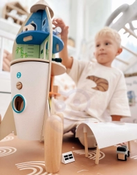 Αυτός ο λεπτομερώς σχεδιασμένος πύραυλος κρύβει έως και 12 θεματικά δωμάτια (π.χ. αποθήκη, χειρουργείο ή εργαστήριο), που ενθαρρύνουν τα παιδιά στο ελεύθερο παιχνίδι και την αφήγηση ιστοριών. Χάρη στα αποσπώμενα τμήματα και τα διαδραστικά κομμάτια, τα παιδιά μαθαίνουν λογική, υπομονή και συνεργασία.