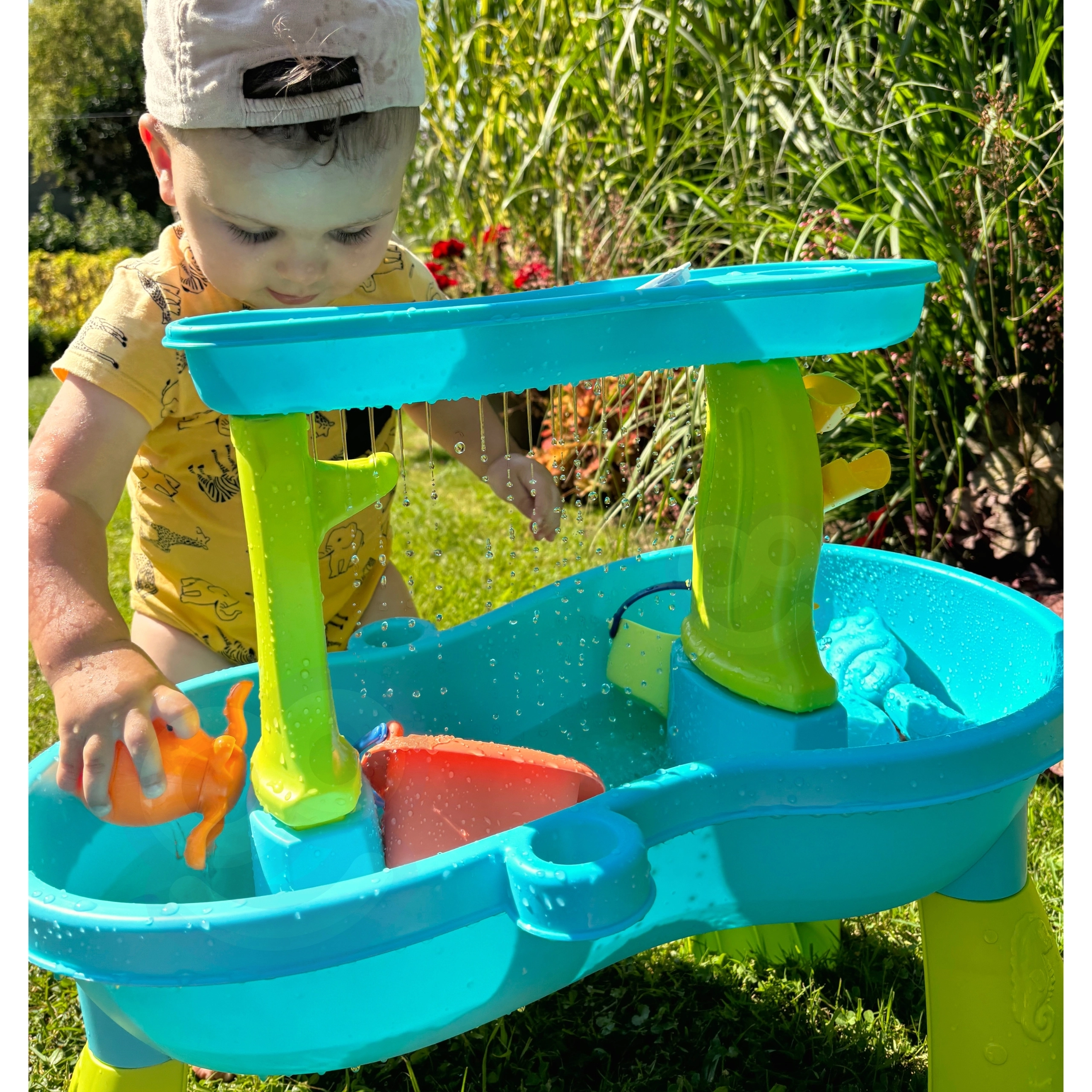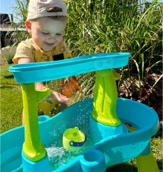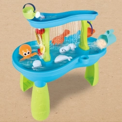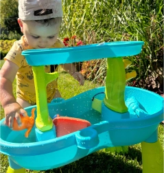 Περιλαμβάνει διάφορες υφές και ερεθίσματα που ενθαρρύνουν τα παιδιά να εξερευνήσουν τον κόσμο του νερού και της άμμου.