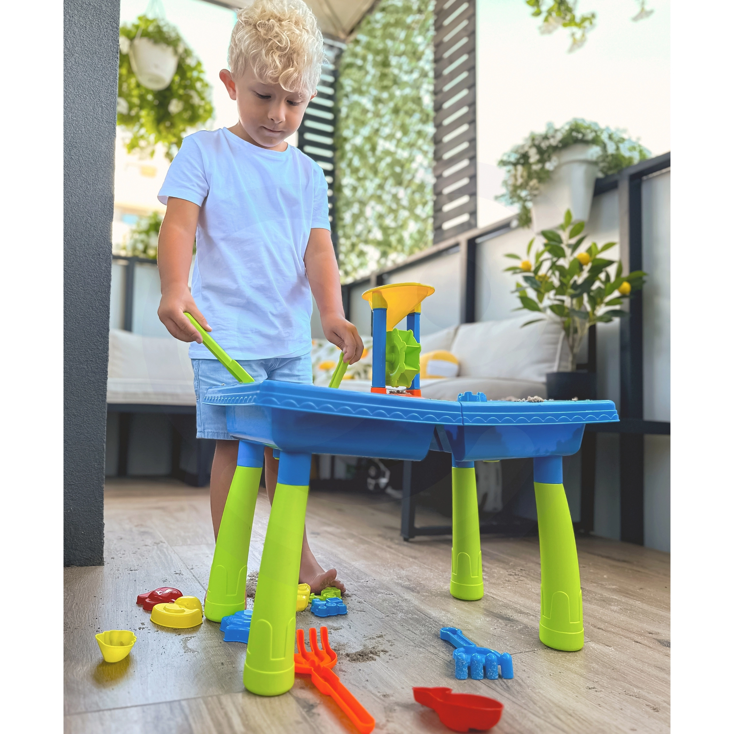 Το τραπέζι για νερό και άμμο είναι σχεδιασμένο ώστε να τραβά την προσοχή των παιδιών και να τα διατηρεί απασχολημένα για ώρα χάρη στα διαδραστικά στοιχεία του.