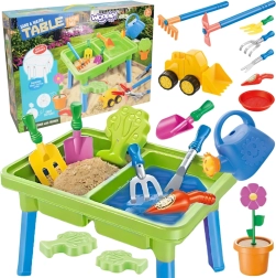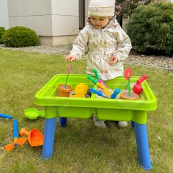 Ο πλούσιος εξοπλισμός με 13 αξεσουάρ (ποτιστήρι, φτυαράκια, τσουγκράνα, καλούπια, μικρό αυτοκινητάκι–ανατρεπόμενο, γλαστράκι με λουλουδάκι και άλλα) ενθαρρύνει τη φαντασία, αναπτύσσει τη λεπτή κινητικότητα και υποστηρίζει ατομικό και ομαδικό παιχνίδι. Ιδανικό για κήπο, βεράντα, παραλία και παιδικό δωμάτιο.