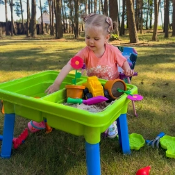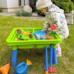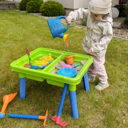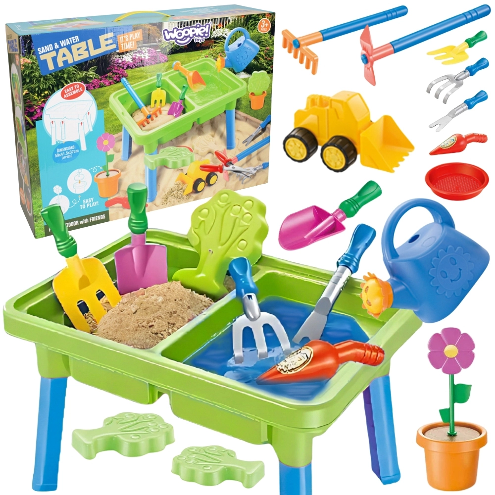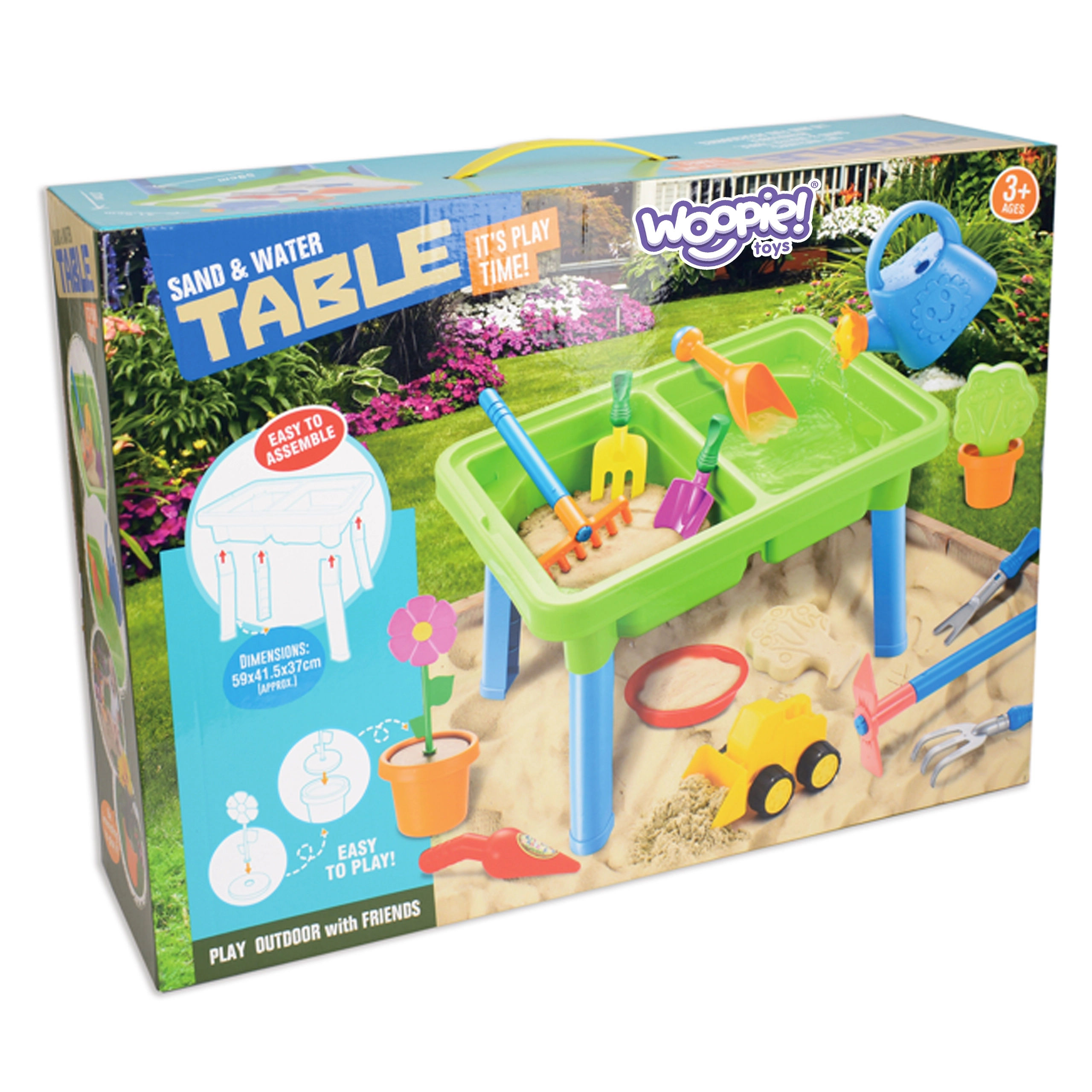 Ανακαλύψτε το πολυλειτουργικό τραπέζι παιχνιδιού 2 σε 1 WOOPIE, που συνδυάζει παιχνίδι με νερό και δημιουργία με άμμο σε ένα συμπαγές σετ. Δύο ξεχωριστές θήκες επιτρέπουν να γεμίσετε τη μία με νερό και την άλλη με άμμο, ώστε τα παιδιά να μπορούν ταυτόχρονα να μαζεύουν, να μεταγγίζουν, να κοσκινίζουν και να σχηματίζουν.