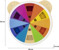 Ο ξύλινος πίνακας ανάμειξης χρωμάτων σε σχήμα κεφαλιού αρκούδας είναι όχι μόνο αισθητικά ελκυστικός, αλλά και μια εκπαιδευτική βοήθεια για παιδιά από 18 μηνών. Με την περιστροφή του ακρυλικού δίσκου τα παιδιά μπορούν να αναμειγνύουν χρώματα και να ανακαλύπτουν νέα. Κάθε περιστροφή καταλήγει σε μοναδικά χρώματα που συναρπάζουν τα παιδιά.