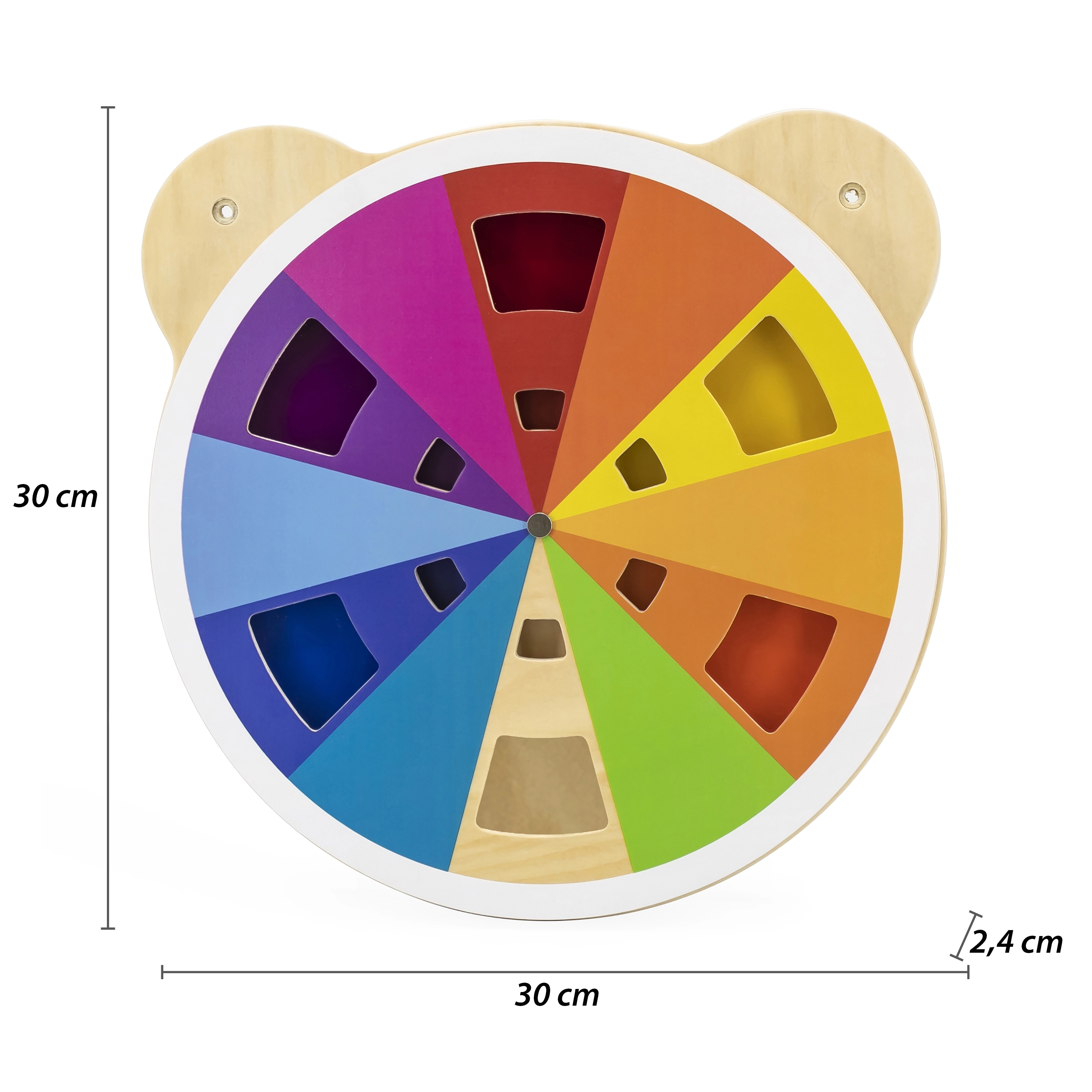 Ο πίνακας επιτρέπει στα παιδιά να ανακαλύπτουν και να μαθαίνουν νέα χρώματα περιστρέφοντας τον ακρυλικό δίσκο.