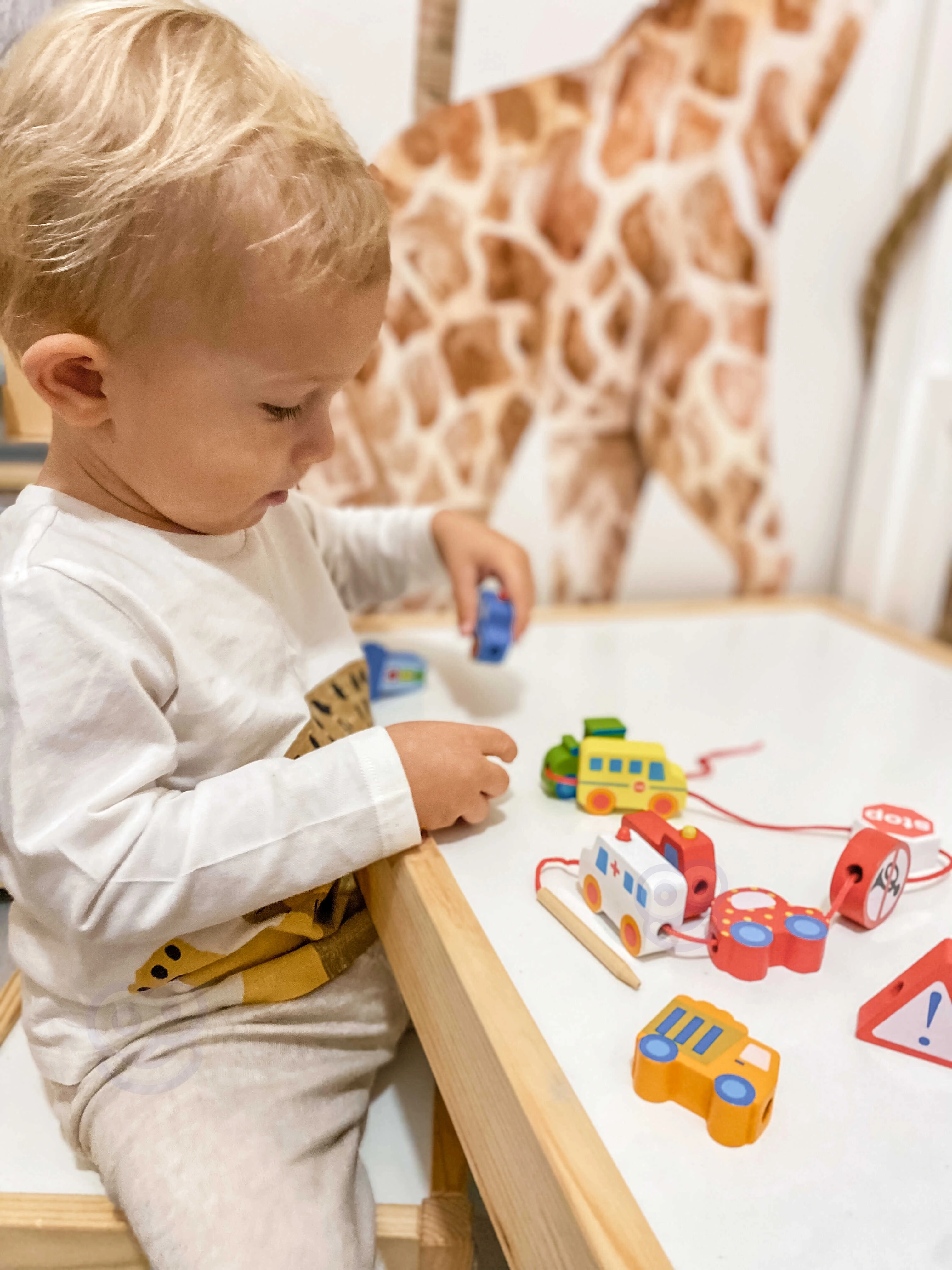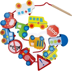 Αυτό το δημιουργικό σετ προσφέρει σε παιδιά από 2 ετών χαρά μέσα από το πέρασμα και τη συναρμολόγηση. Με τα ζωηρά χρώματα και τα διαφορετικά σχήματα οχημάτων, τα μικρά χεράκια μαθαίνουν ακρίβεια και υπομονή, ενώ τα παιδιά εξοικειώνονται με βασικές αρχές κυκλοφοριακής αγωγής με παιχνιδιάρικο τρόπο. Το φυσικό ξύλο και οι λείες άκρες εξασφαλίζουν ευχάριστη και ασφαλή αίσθηση στην αφή.