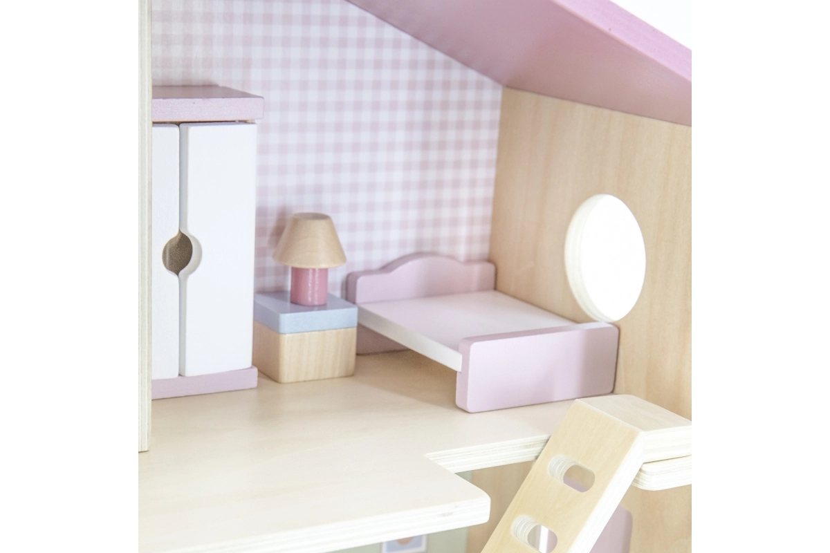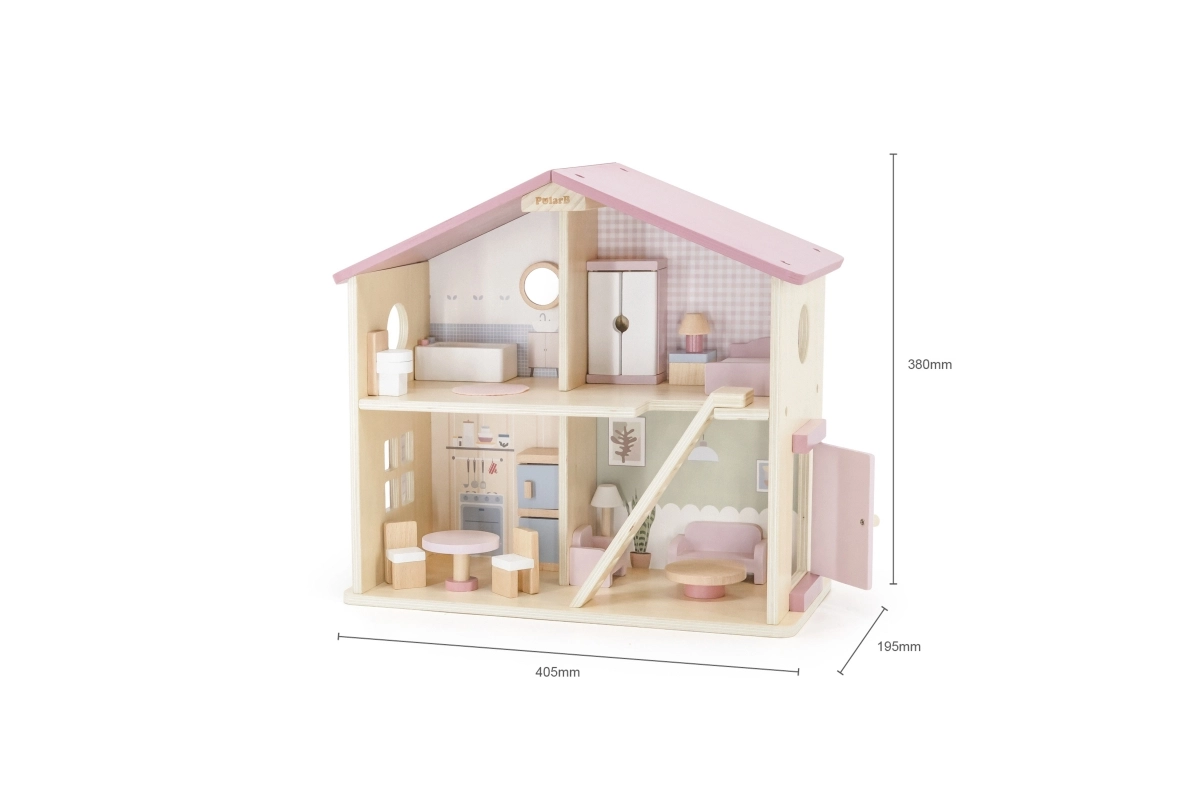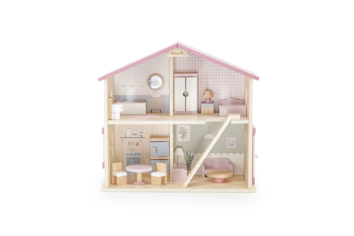 Το κομψό ξύλινο κουκλόσπιτο της Viga PolarB θα ενθουσιάσει παιδιά από 3 ετών. Προσφέρει 2 ορόφους χωρισμένους με σκάλα, είναι πλήρως εξοπλισμένο με έπιπλα και κατασκευασμένο από ποιοτικό ξύλο σε απαλές παστέλ αποχρώσεις. Ιδανικό για κούκλες έως 10 cm και για την ανάπτυξη της φαντασίας και των κοινωνικών δεξιοτήτων.