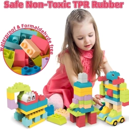 Το σετ είναι κατάλληλο για παιδιά από 3 ετών και περιλαμβάνει αυτοκόλλητα για τη διακόσμηση των τουβλών. Επιπλέον, τα τουβλάκια βοηθούν στην ανάπτυξη των κινητικών δεξιοτήτων και συμβάλλουν στην αναγνώριση σχημάτων και χρωμάτων.