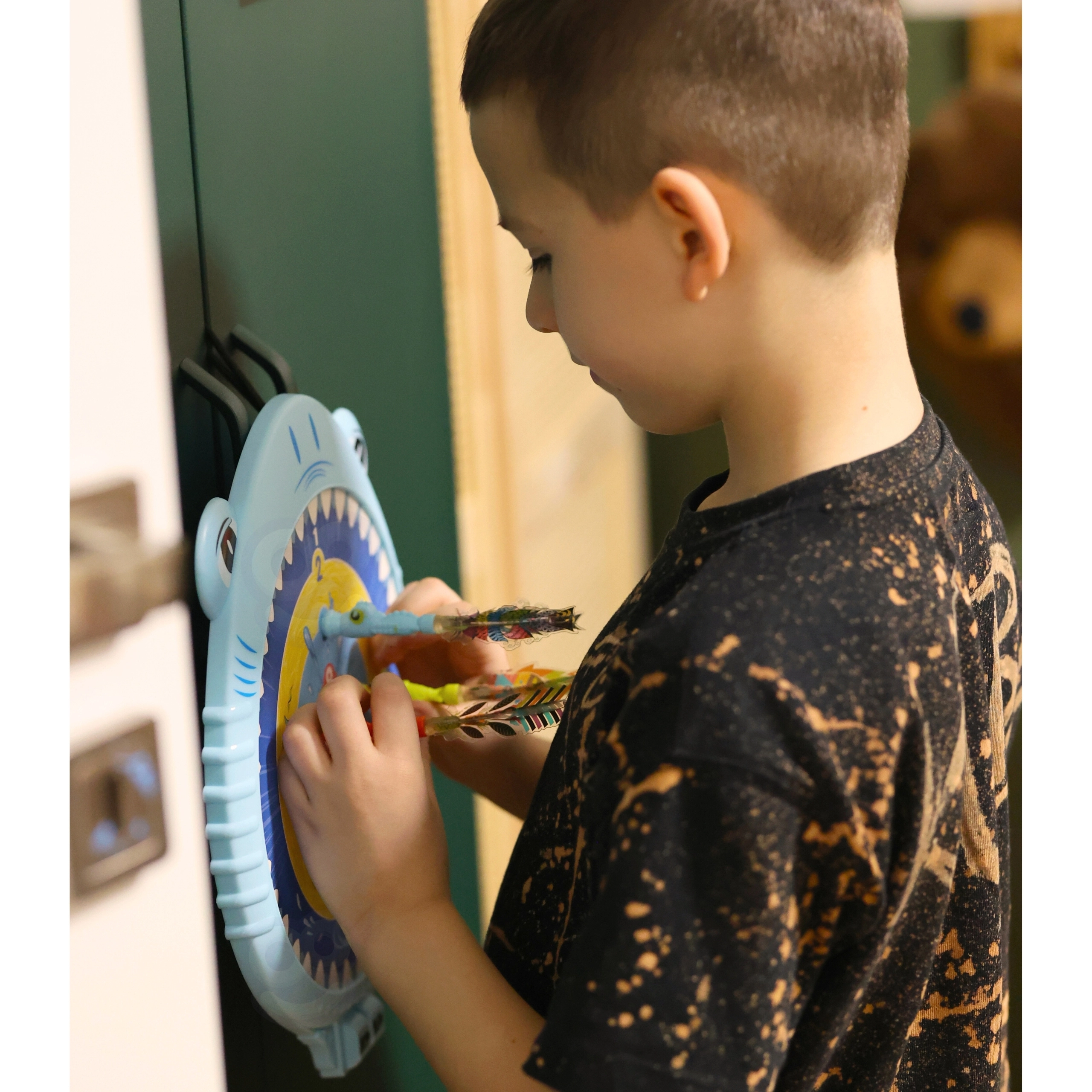 Ο μαγνητικός στόχος σε σχήμα καρχαρία τραβά την προσοχή κάθε παιδιού και το ενθαρρύνει να παίξει.