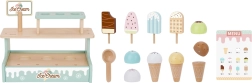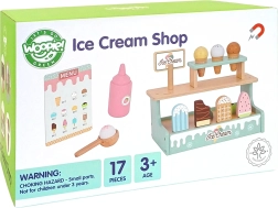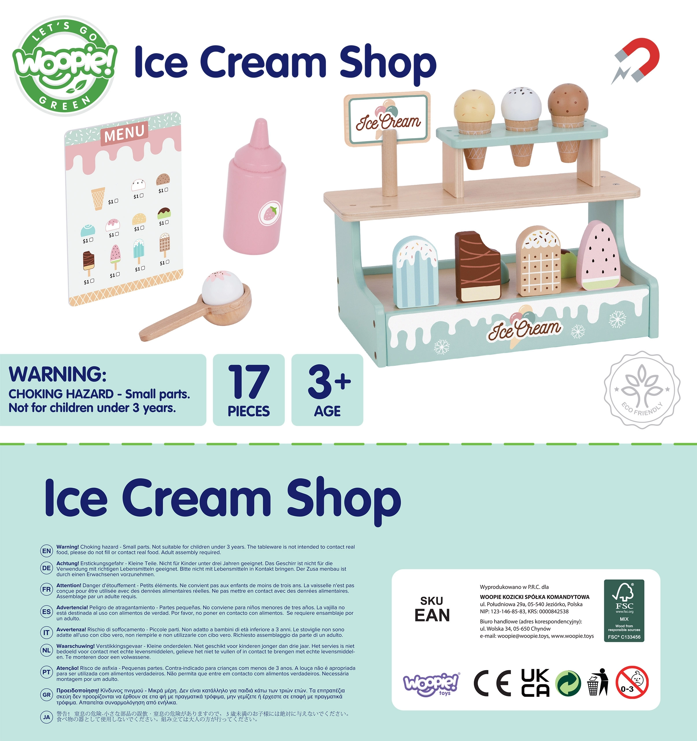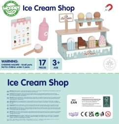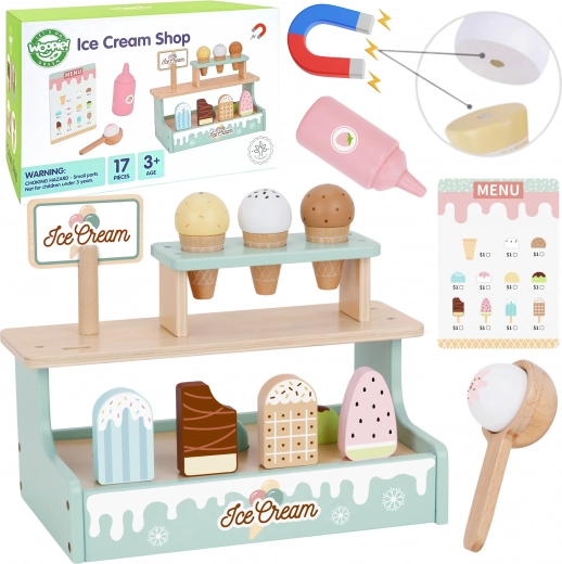 Γίνετε παγωτατζής με τον κομψό ξύλινο πάγκο WOOPIE GREEN. Παλεινωμένο σετ από ασφαλές ξύλο προσφέρει χωνάκια, μπάλες και παγωτίνια, μαγνητική σύνδεση μπαλών και μενού για παιχνίδι καταστήματος. Υποστηρίζει τη λεπτή κινητικότητα, τη φαντασία και το role‑play.