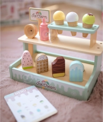 Διώροφη βάση, χωνάκια, παγωτίνια, σέσουλα και μενού προσκαλούν σε ρεαλιστική εξυπηρέτηση και αναπτύσσουν κοινωνικές δεξιότητες.