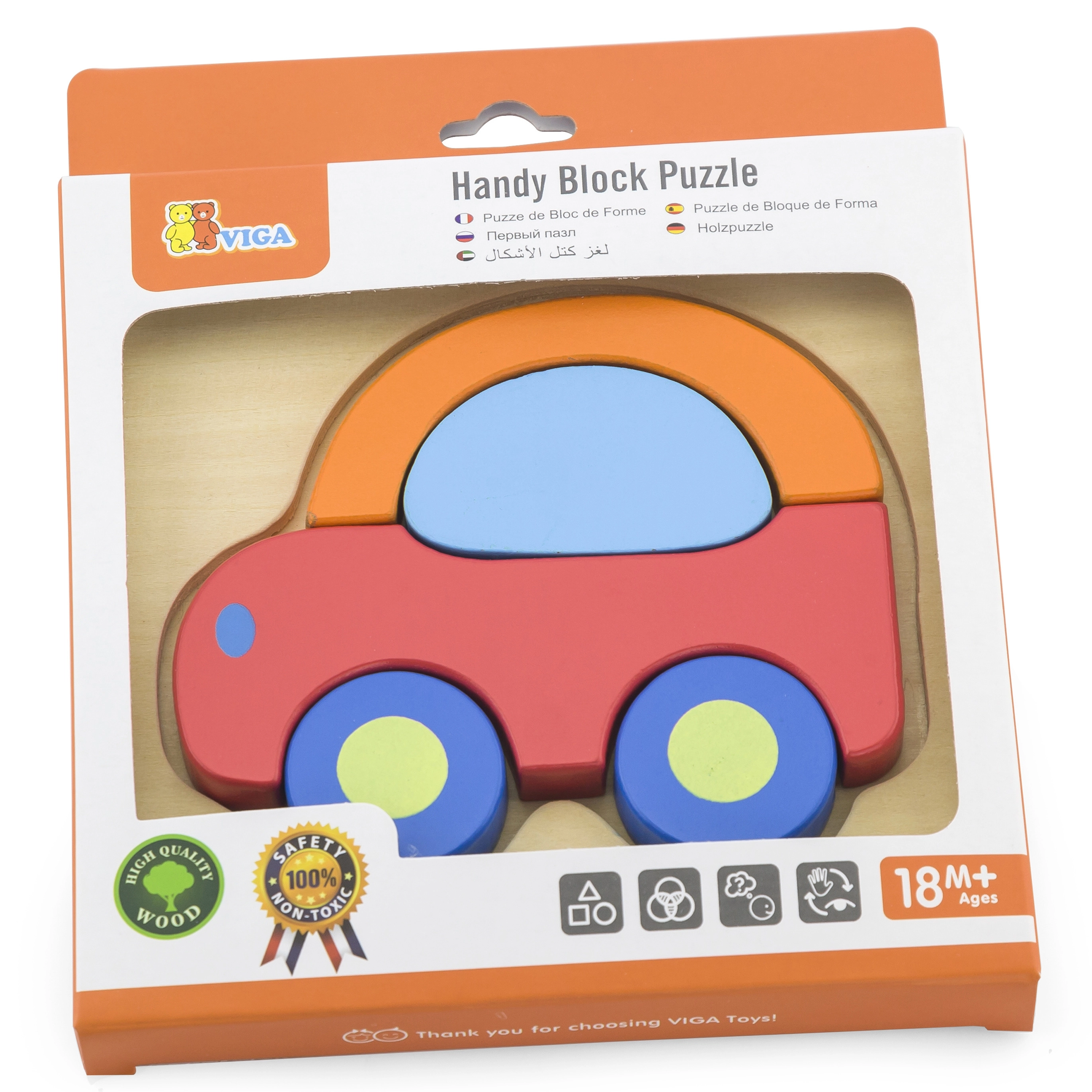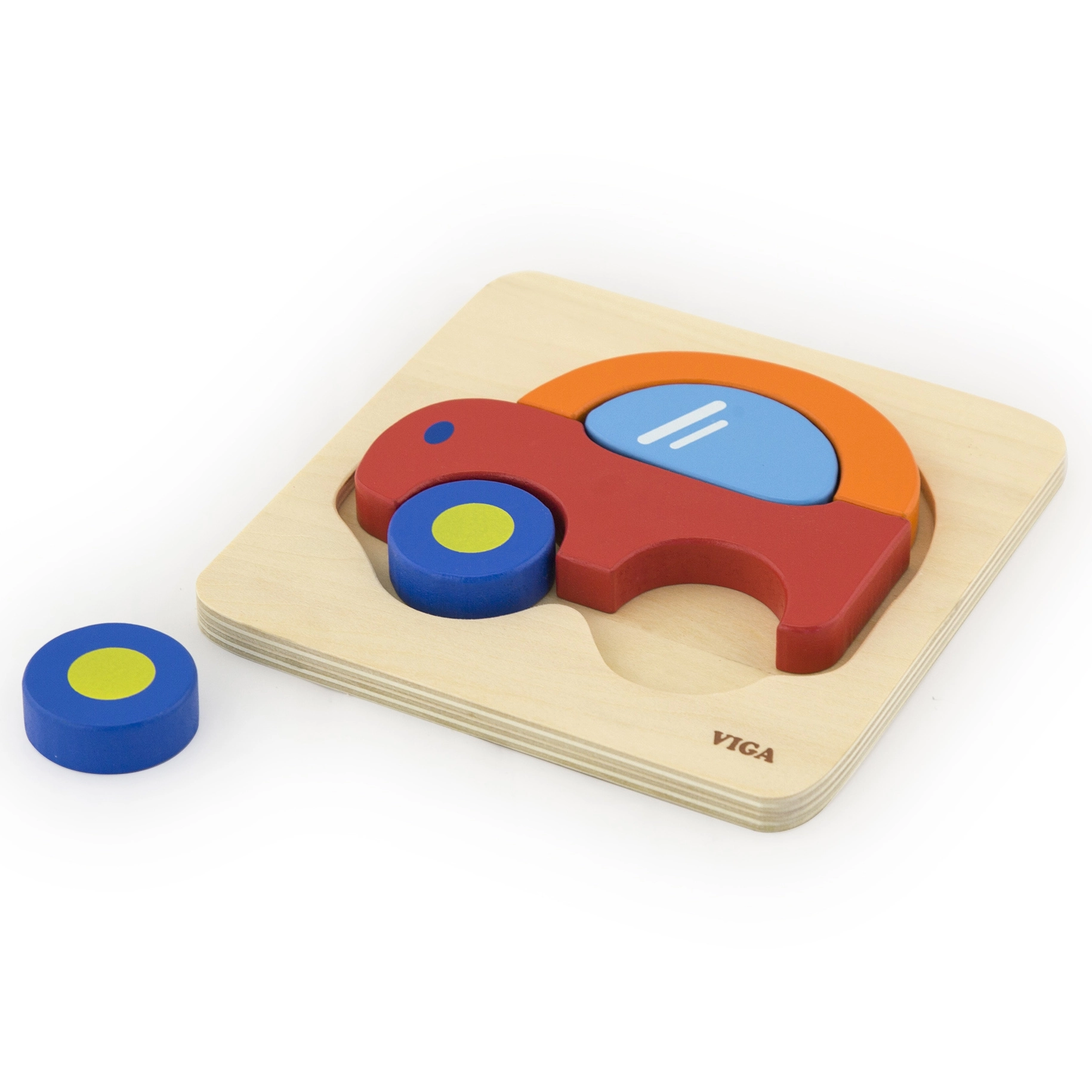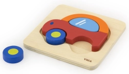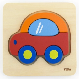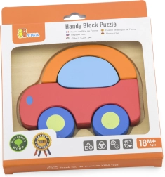 Ξύλινο παζλ-μπλοκ σε σχήμα αυτοκινήτου από τη μάρκα VIGA, που προσφέρει ανθεκτικότητα και ελκυστικά χρώματα.
