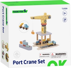 Ανακαλύψτε τον συναρπαστικό κόσμο των μεταφορών με το ξύλινο σετ λιμενικού γερανού από την Tooky Toy! Αυτό το προσεγμένα κατασκευασμένο παιχνίδι μεταφέρει τα παιδιά στην καρδιά της κίνησης του λιμανιού, όπου μπορούν να χειρίζονται κοντέινερ με τη βοήθεια του μεγάλου περιστρεφόμενου γερανού και να μεταφέρουν φορτία με τρένο, φορτηγά και πλοία. Το σετ είναι πολύχρωμο, ανθεκτικό και λεπτομερώς σχεδιασμένο, εξασφαλίζοντας ώρες δημιουργικής διασκέδασης.