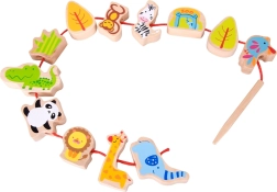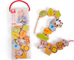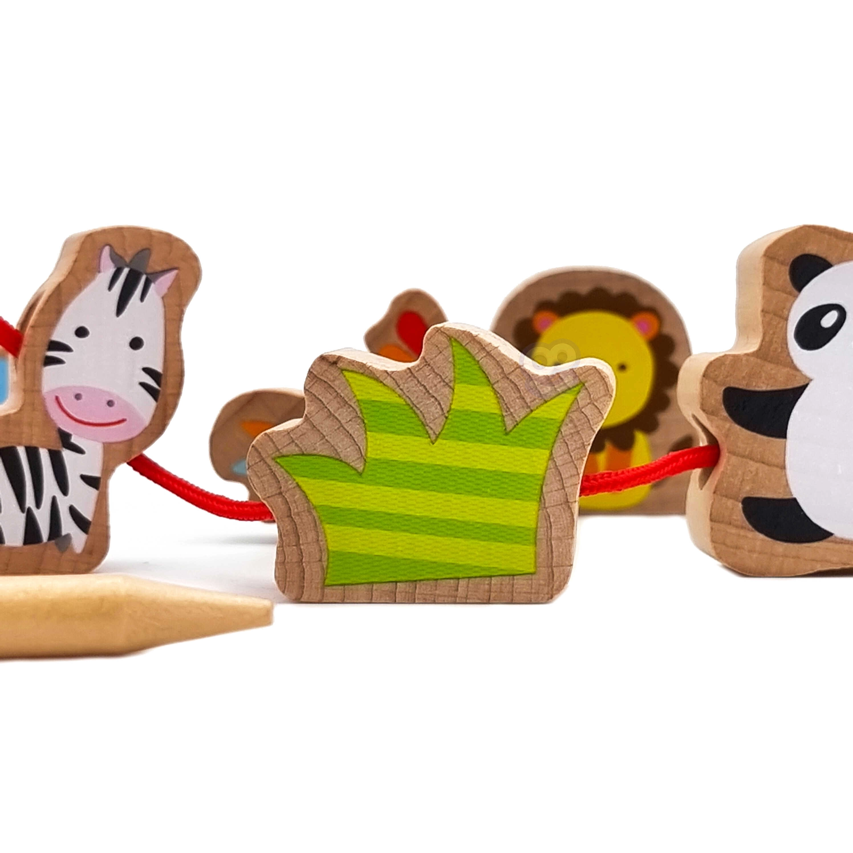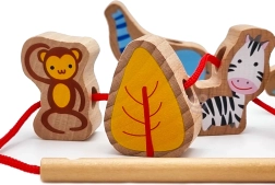 Το πέρασμα των ξύλινων χαντρών σε κορδόνι με βελόνα ενισχύει την ακριβή λαβή, τον συντονισμό ματιού–χεριού και την υπομονή – ιδανική εξάσκηση για μικρά δαχτυλάκια.