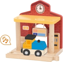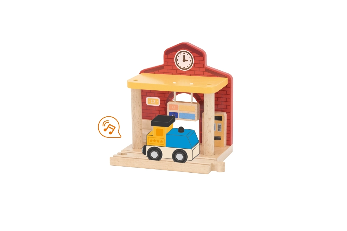 Συμπληρώστε τη ξύλινη σιδηροδρομική σας διαδρομή με έναν συμπαγή σταθμό με ρεαλιστικές λεπτομέρειες. Η ανθεκτική ξύλινη κατασκευή, ο ευανάγνωστος δείκτης ρολογιού και το στέγαστρο δημιουργούν αυθεντική ατμόσφαιρα σιδηροδρομικού σταθμού. Τα ενσωματωμένα εφέ με μπαταρίες τονίζουν κάθε στάση και ενισχύουν το διαδραστικό παιχνίδι.
