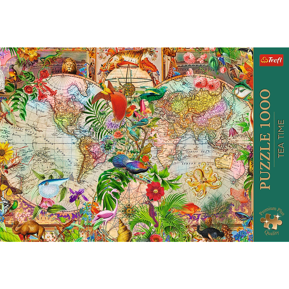 Βυθιστείτε σε έναν κόσμο χρωμάτων και συναισθημάτων με τη σειρά Trefl Premium Plus: Tea Time. Το μοτίβο του αρχαίου χάρτη προσφέρει αισθητική απόλαυση και ευχάριστη πρόκληση για προχωρημένους και αρχάριους λύτες. Χάρη στην ανώτερη ποιότητα υλικών και την ακριβή κοπή, τα κομμάτια θα εφαρμόζουν σταθερά και η συναρμολόγηση θα είναι ομαλή και διασκεδαστική.