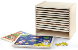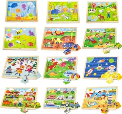 Ανακαλύψτε τη χαρά της μάθησης μέσω του παιχνιδιού με τα ξύλινα παζλ Viga. Το σετ περιλαμβάνει 12 πλαισιωμένα παζλ των 24 κομματιών και μία πρακτική ξύλινη βάση. Υποστηρίζει τον συντονισμό χεριού–ματιού, τη λογική σκέψη και τη φαντασία των παιδιών. Ασφαλή χρώματα, στιβαρό ξύλο και χαριτωμένες εικονογραφήσεις ενθαρρύνουν τα παιδιά στην υπομονή και τη συγκέντρωση.