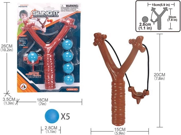 Η σφεντόνα μας με πέντε μπαλάκια είναι εξαιρετική επιλογή για παιδιά και ενήλικες που αγαπούν τις υπαίθριες δραστηριότητες. Η σφεντόνα έχει συμπαγείς διαστάσεις 15x20 cm, που επιτρέπουν εύκολο χειρισμό και μεταφορά. Τα μπαλάκια με διάμετρο 2,8 cm είναι ιδανικά για ακριβείς βολές.
