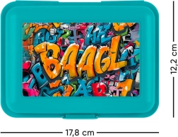 Κουτί φαγητού με έντονο graffiti μοτίβο και λογότυπο BAAGL που προσφέρει μοναδικό στυλ.